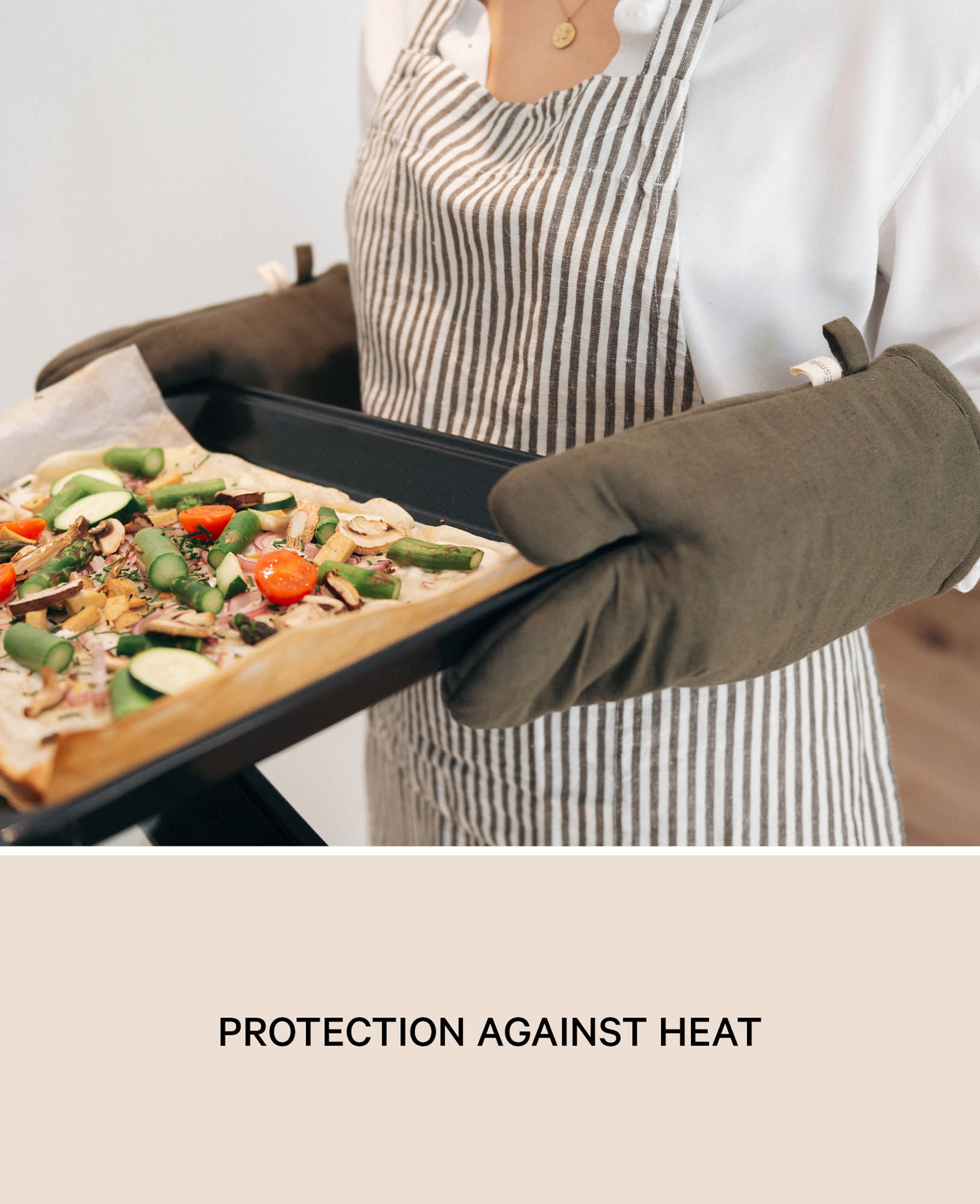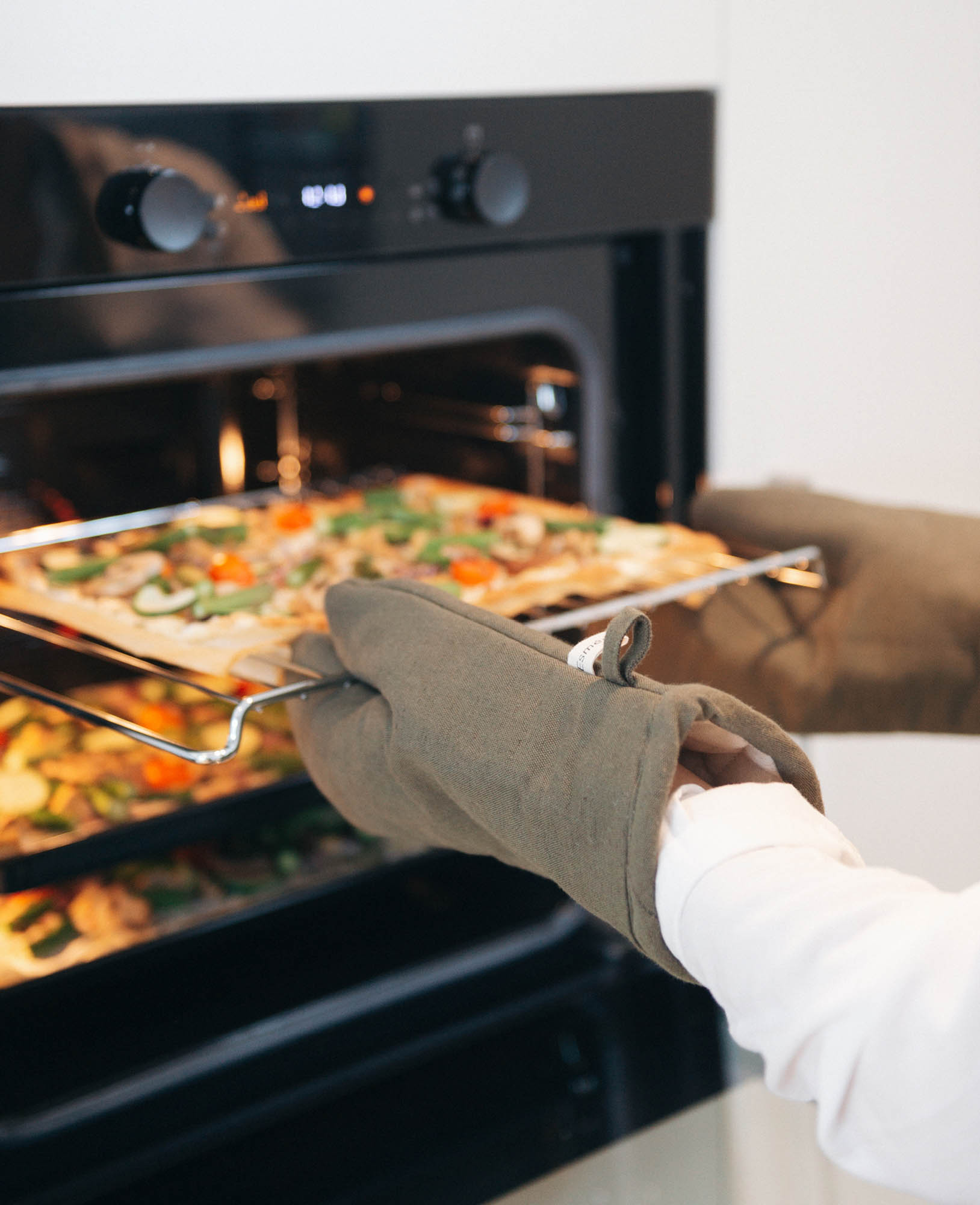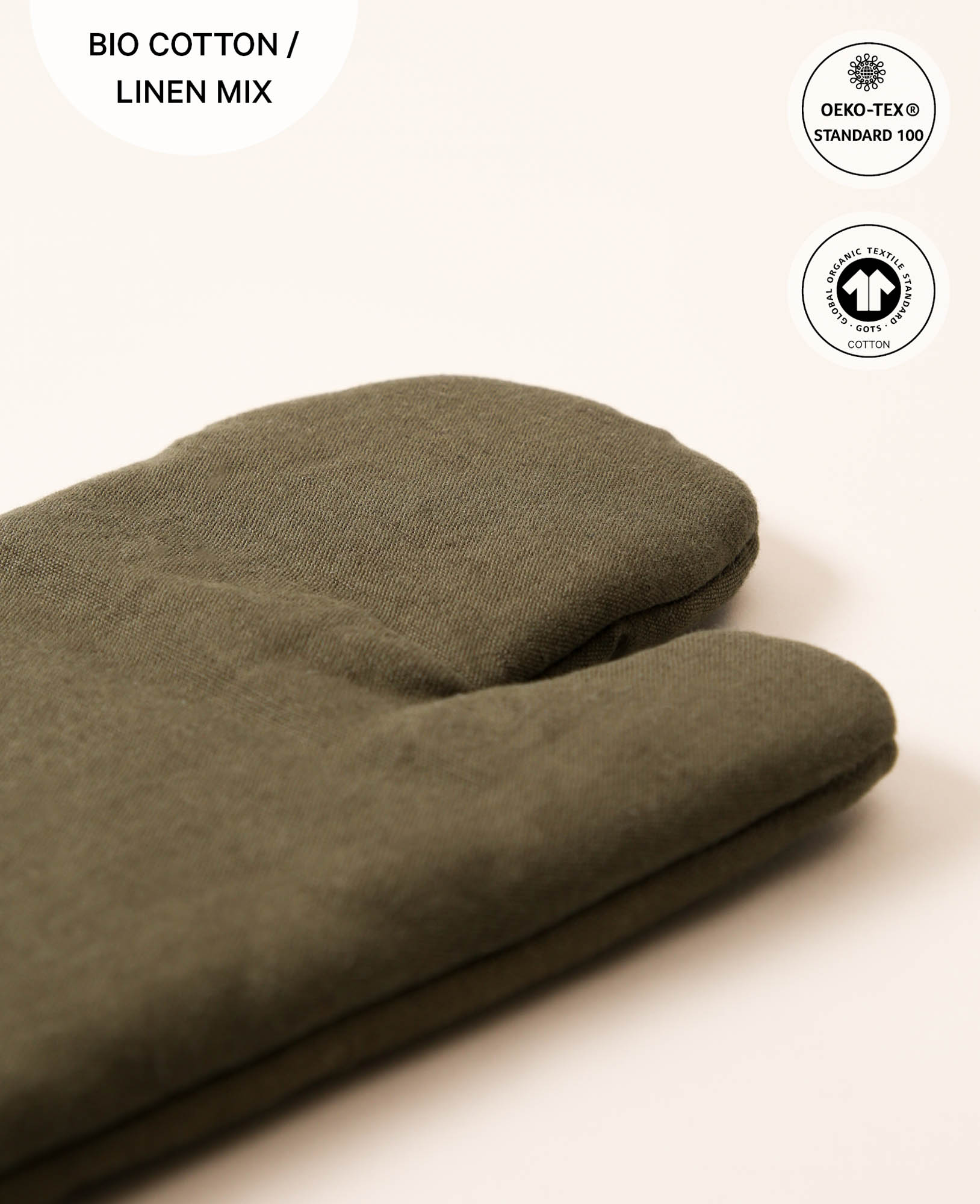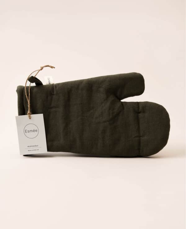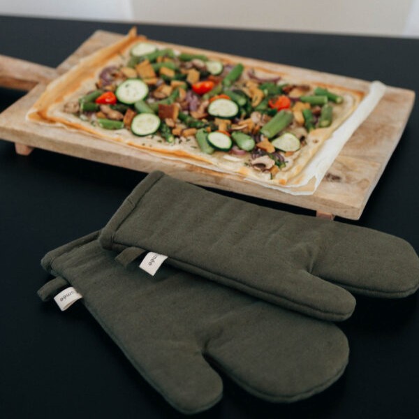 Ofenhandschuh “Nura” aus olivgrünem Baumwoll-Leinenmix