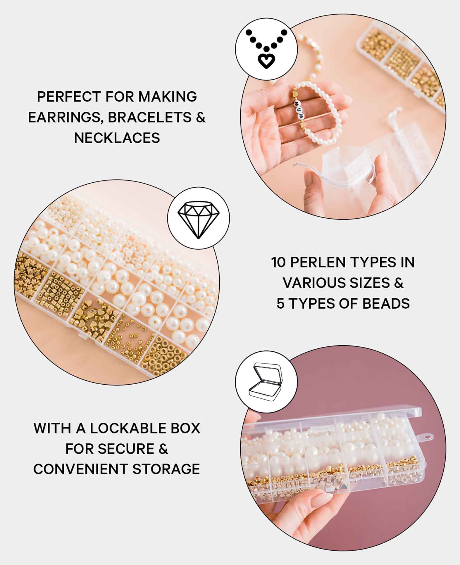 (720-tlg. Set) Perlen DIY Bastel Schmuck Runde Zwischenperle in Perlmu