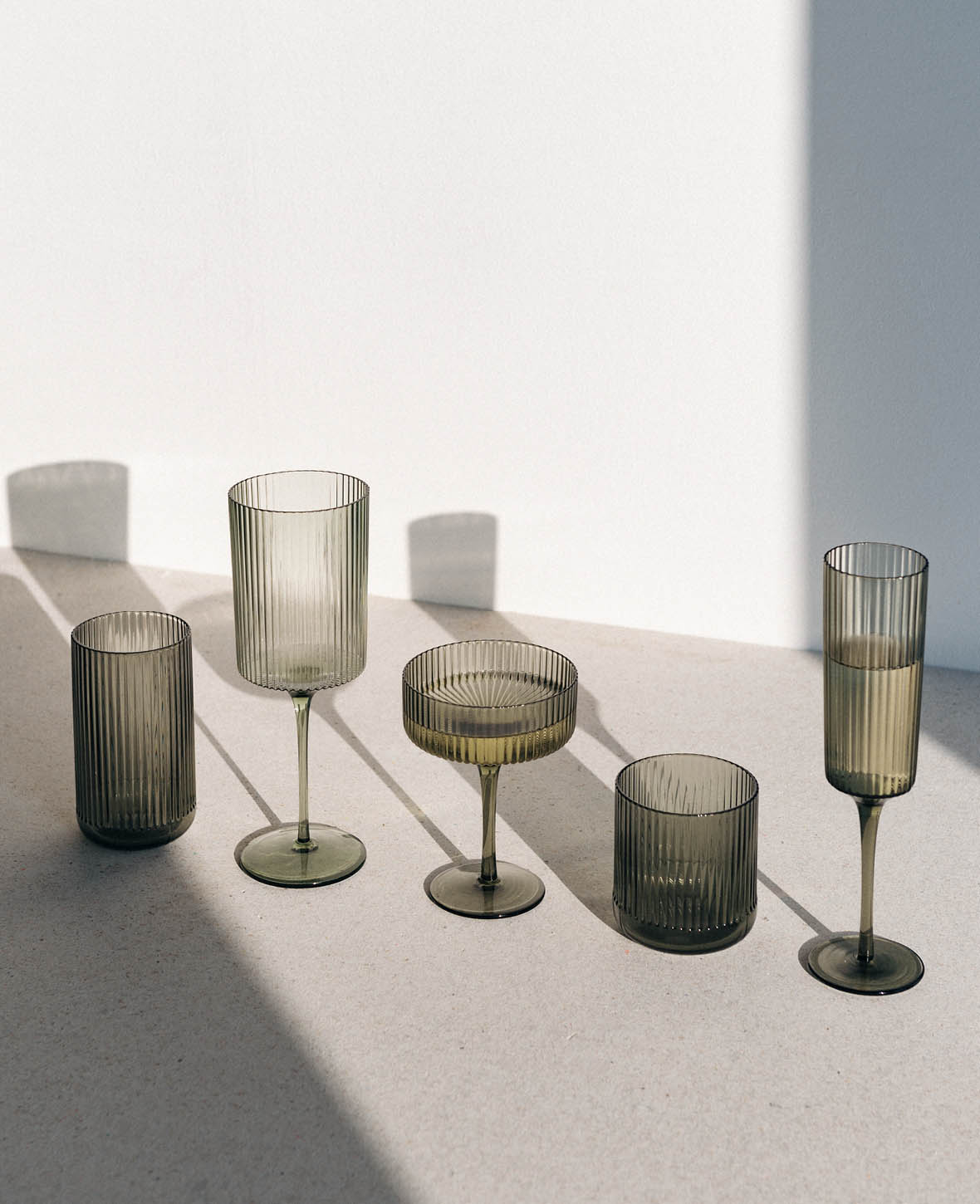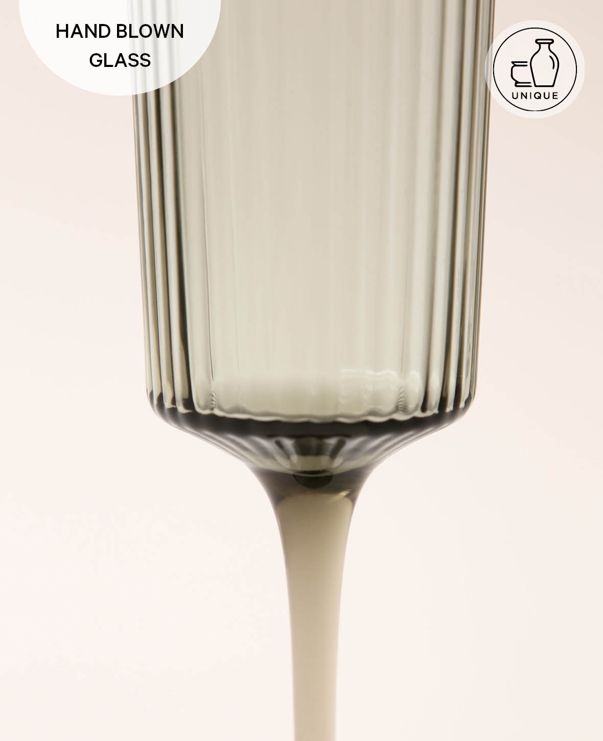 Aus grauem Glas mit Rillenstruktur