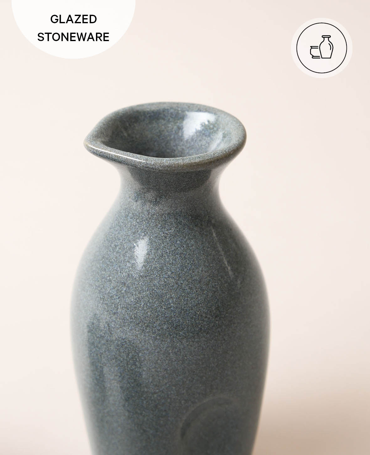 Blau-grau glasiertes Keramik Sake Set “Tsuki” mit Krug und 4 Bechern 3 dl / 50 ml