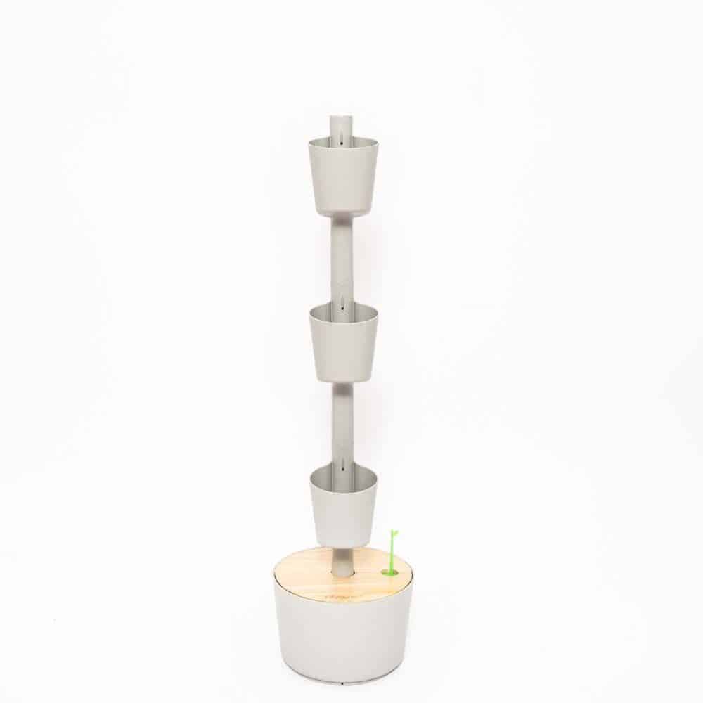 – Vertikaler, selbstbewässernder Design-Pflanztopf. Erhältlich in zwei Grössen: 3 oder 4 Töpfe; und vier Farben: Grau, Kiefernrinde, Schwarz oder Weiss.
