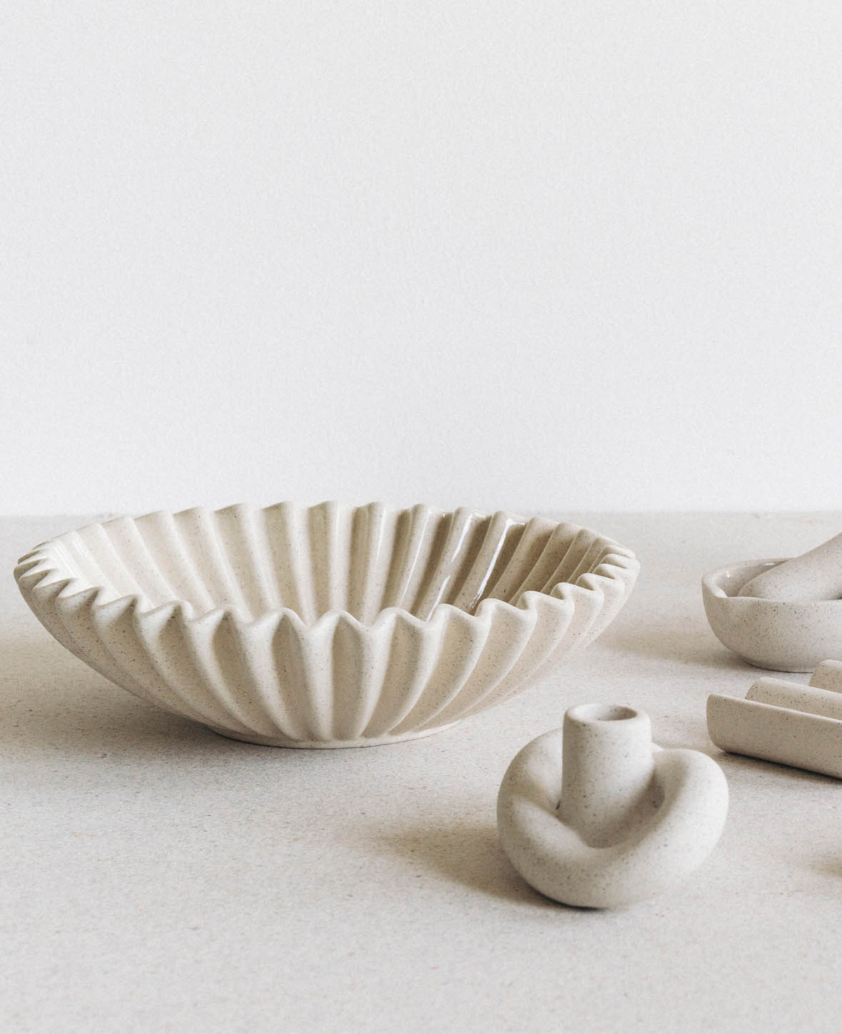 Beige mit schwarzen Sprenkeln und glasierter Innenseite