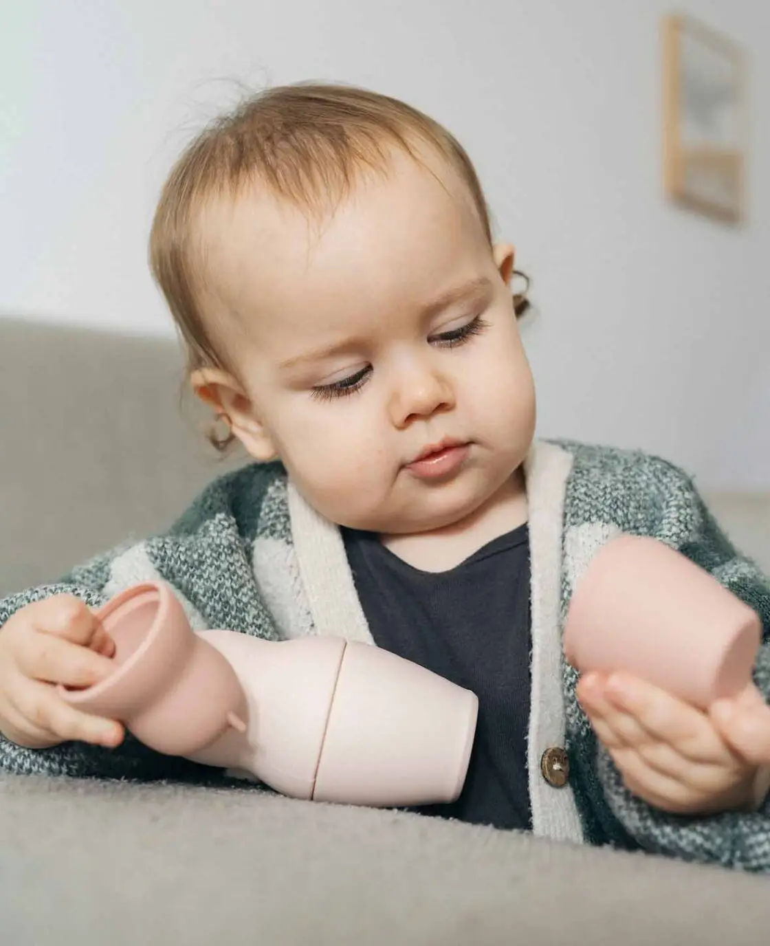 Dieses Stapel-Spielzeug ist perfekt für kleine Kinderhände, die spielerisch Greifen und Zusammenbauen erlernen und unterstützt die Entwicklung der Hand-Augen Koordination. Behutsam hergestellt aus BPA freiem und lebensmittelechte Silikon, was es gleichzeitig zu einem idealen Beissspielzeug macht und wundes Zahnfleisch beim Zahnen angenehm beruhigt. Das leichte und dennoch robuste Silikon richtet beim Herunterfallen oder Spielen keine Schäden oder Lärm an – perfekt wenn die Kleinen um sich werfen.