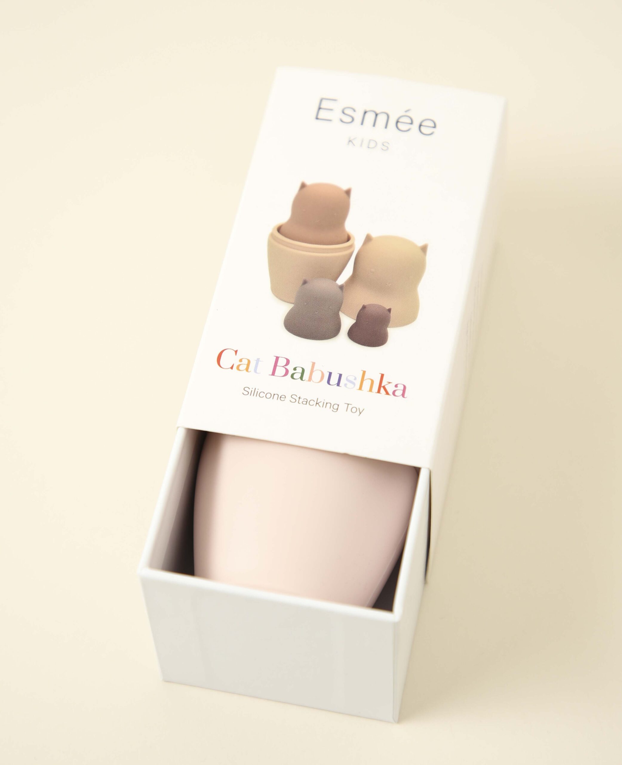 Vierteilige Katzen-Babuschka aus Silikon in rosa-/Lilatönen ab 6 Monaten
