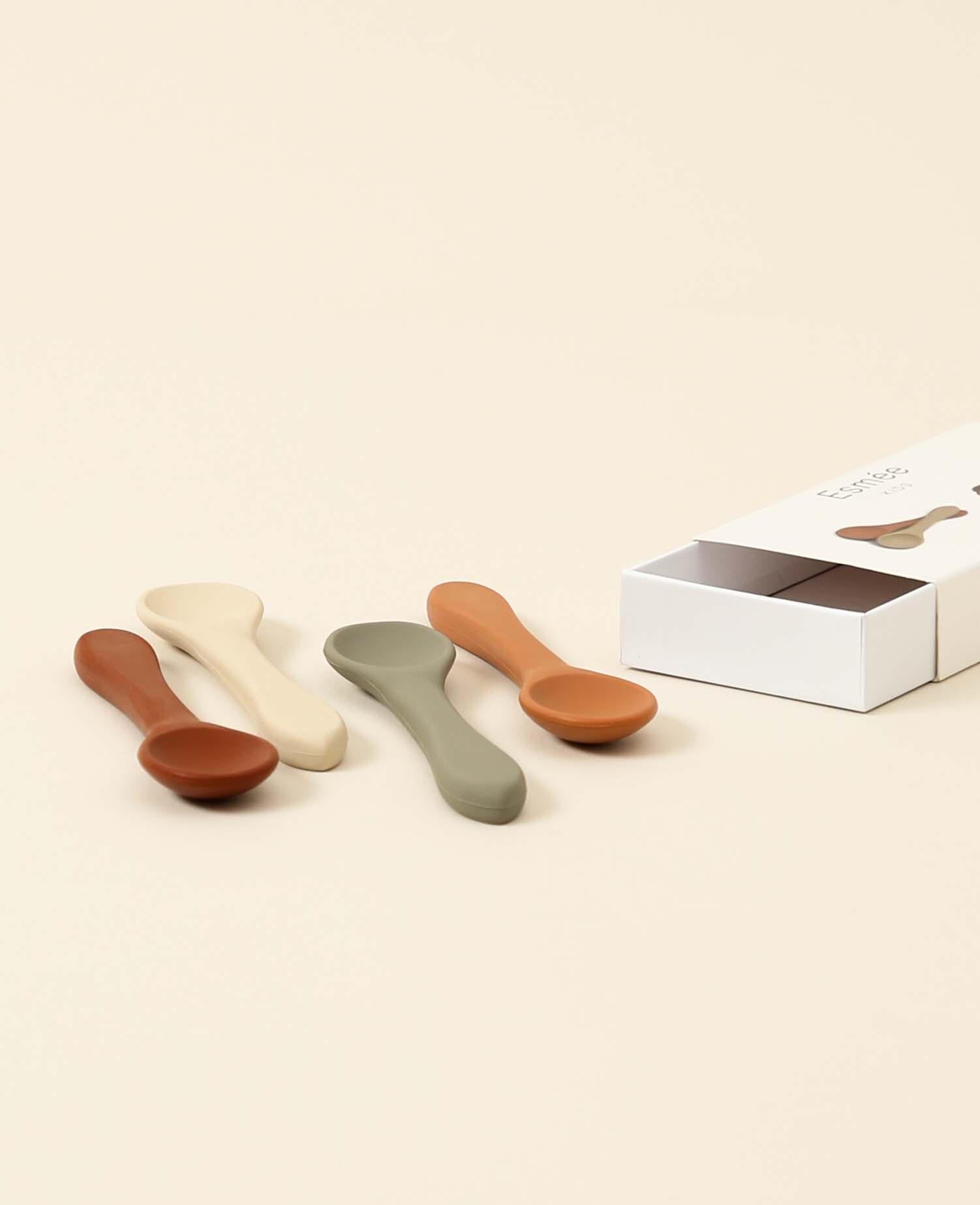 Vierteiliges Löffelset für Kinder aus Silikon, verschiedenfarbig, 14 cm x 1 cm