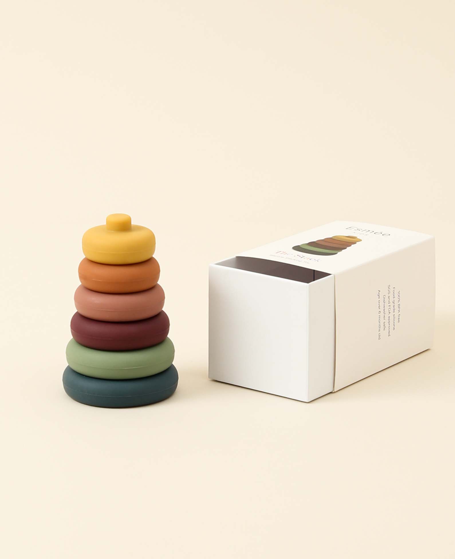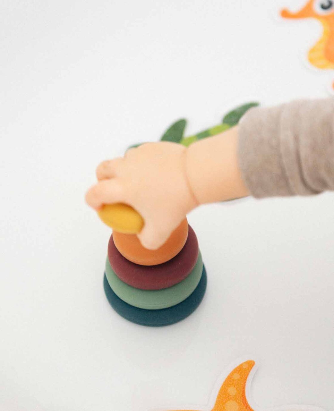 Dieser coole Stapel-Turm ist perfekt für kleine Kinderhände, die spielerisch Greifen und Zusammenbauen erlernen und unterstützt die Entwicklung der Hand-Augen Koordination. Behutsam hergestellt aus BPA freiem und lebensmittelechte Silikon, was es gleichzeitig zu einem idealen Beissspielzeug macht und wundes Zahnfleisch beim Zahnen angenehm beruhigt. Das leichte und dennoch robuste Silikon richtet beim Herunterfallen oder Spielen keine Schäden oder Lärm an – perfekt wenn die Kleinen um sich werfen.