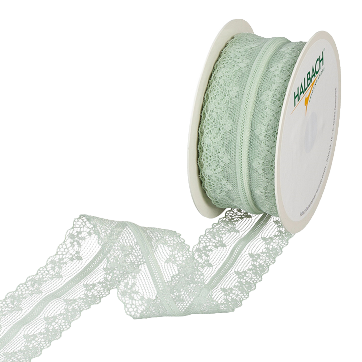 Spitze in der Farbe light mint aus 100% Polyamid 36mm x 15m