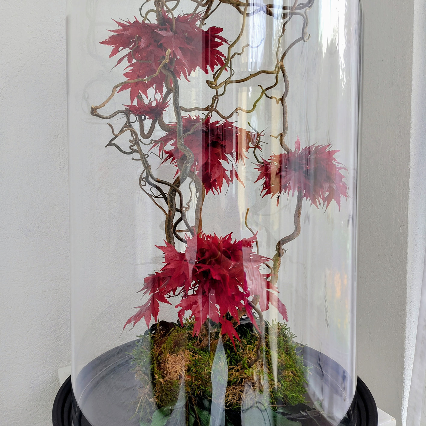 Bonsai aus stabilisiertem Ahorn unter Glasglocke, Einzelstück.
