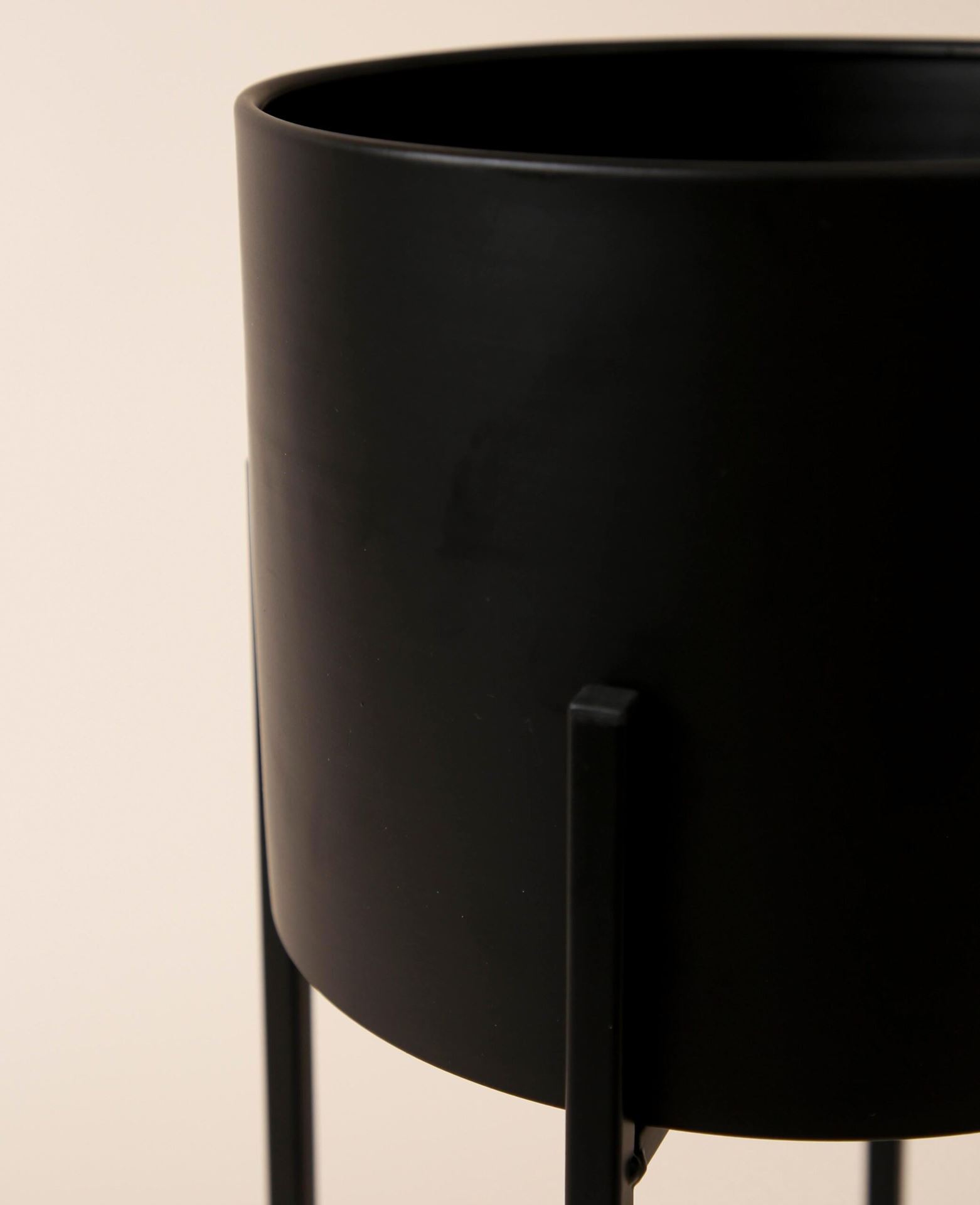 Moderner Blumentopf oder Pflanzenständer aus matt-schwarzem Metall. Erhältlich in zwei Grössen für besonders schöne Kombinationen.