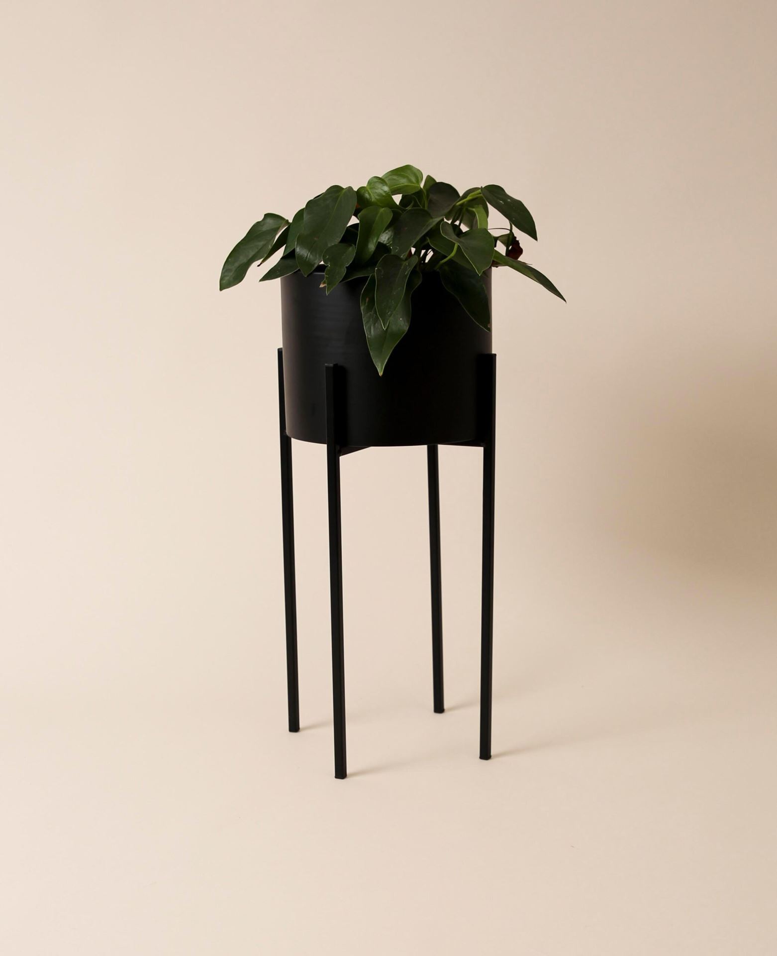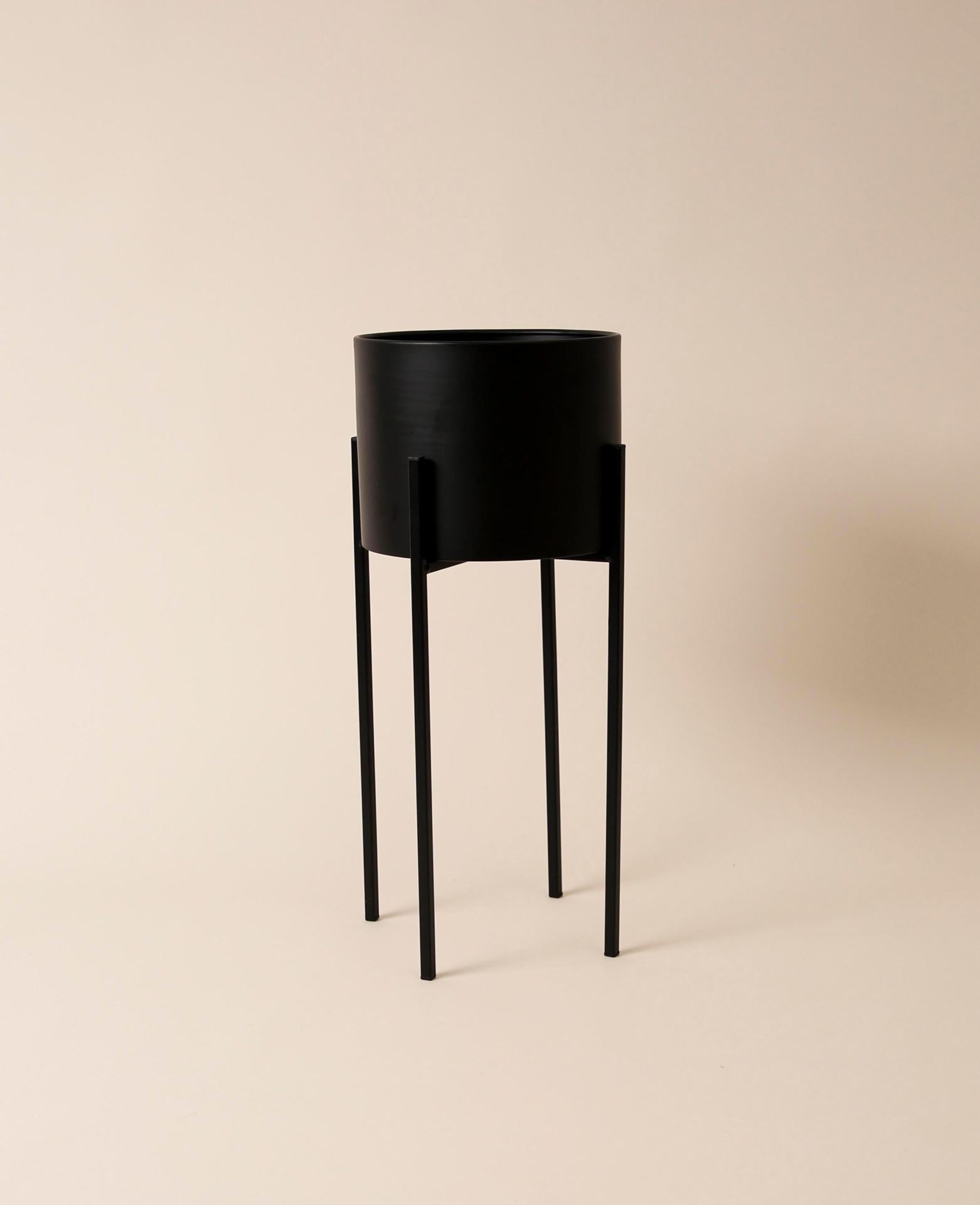 Moderner Blumentopf oder Pflanzenständer aus matt-schwarzem Metall. Erhältlich in zwei Grössen für besonders schöne Kombinationen.