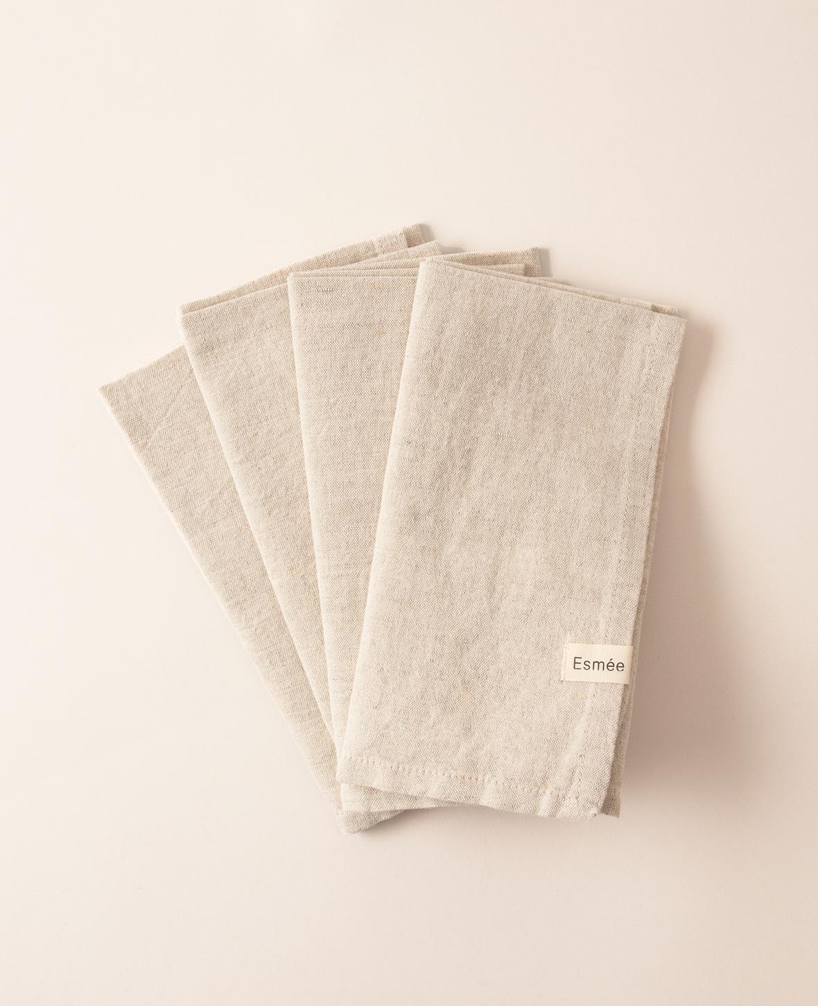 4er Set Stoffservietten “Ted” aus beigem Baumwoll-Leinenmix, 45 cm x 45 cm