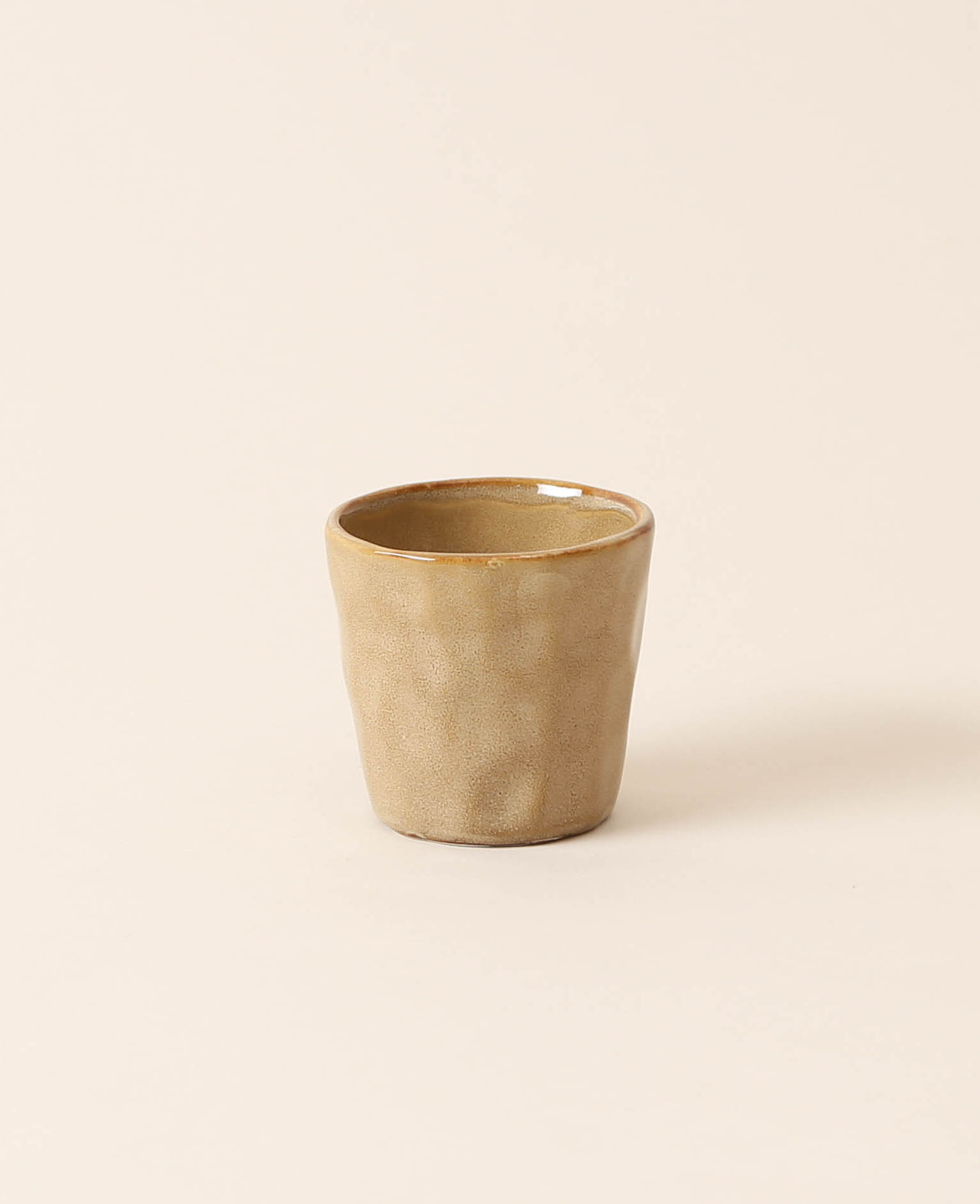 Mini Töpfchen / Teelichthalter mit hellbrauner Glasur, 8 cm