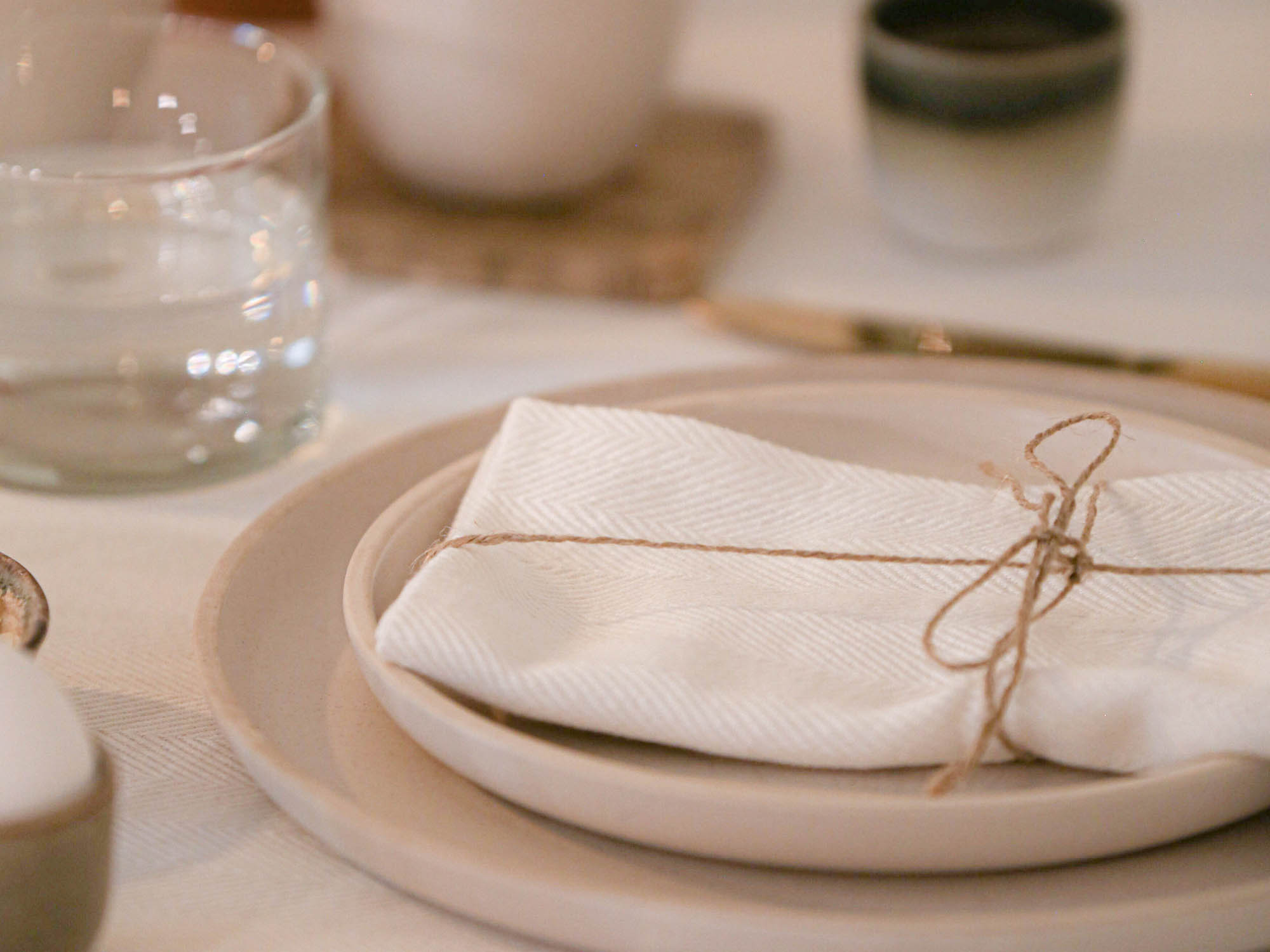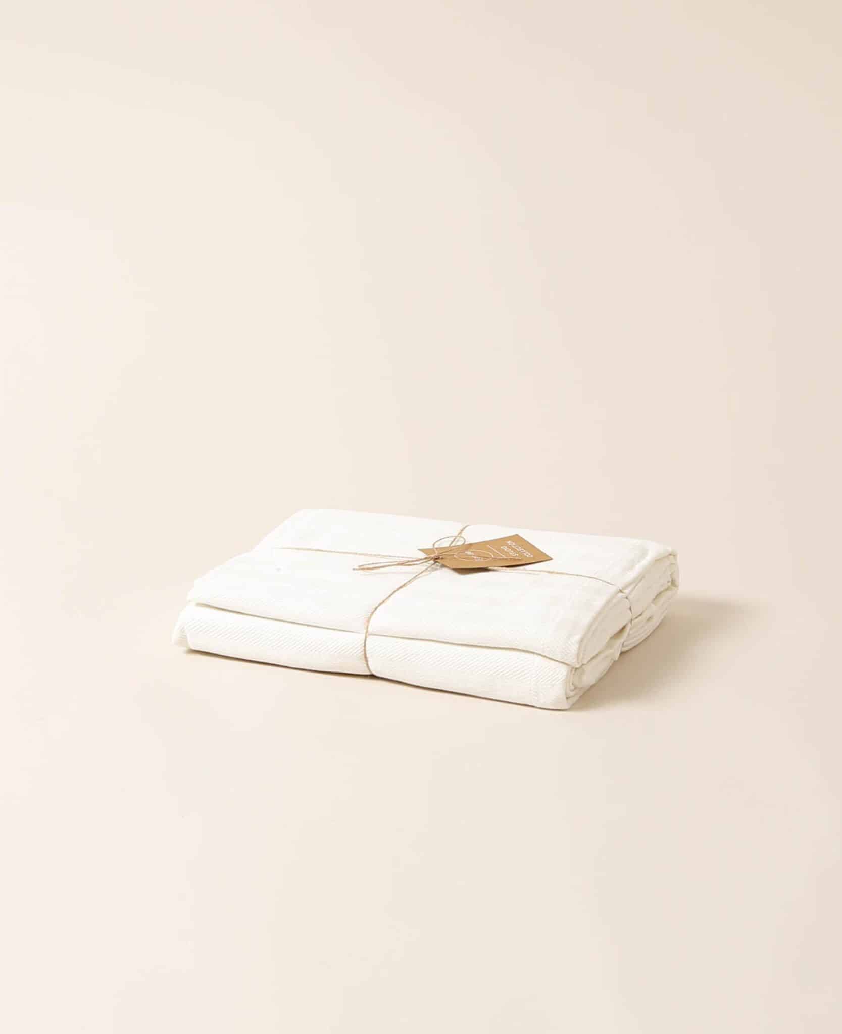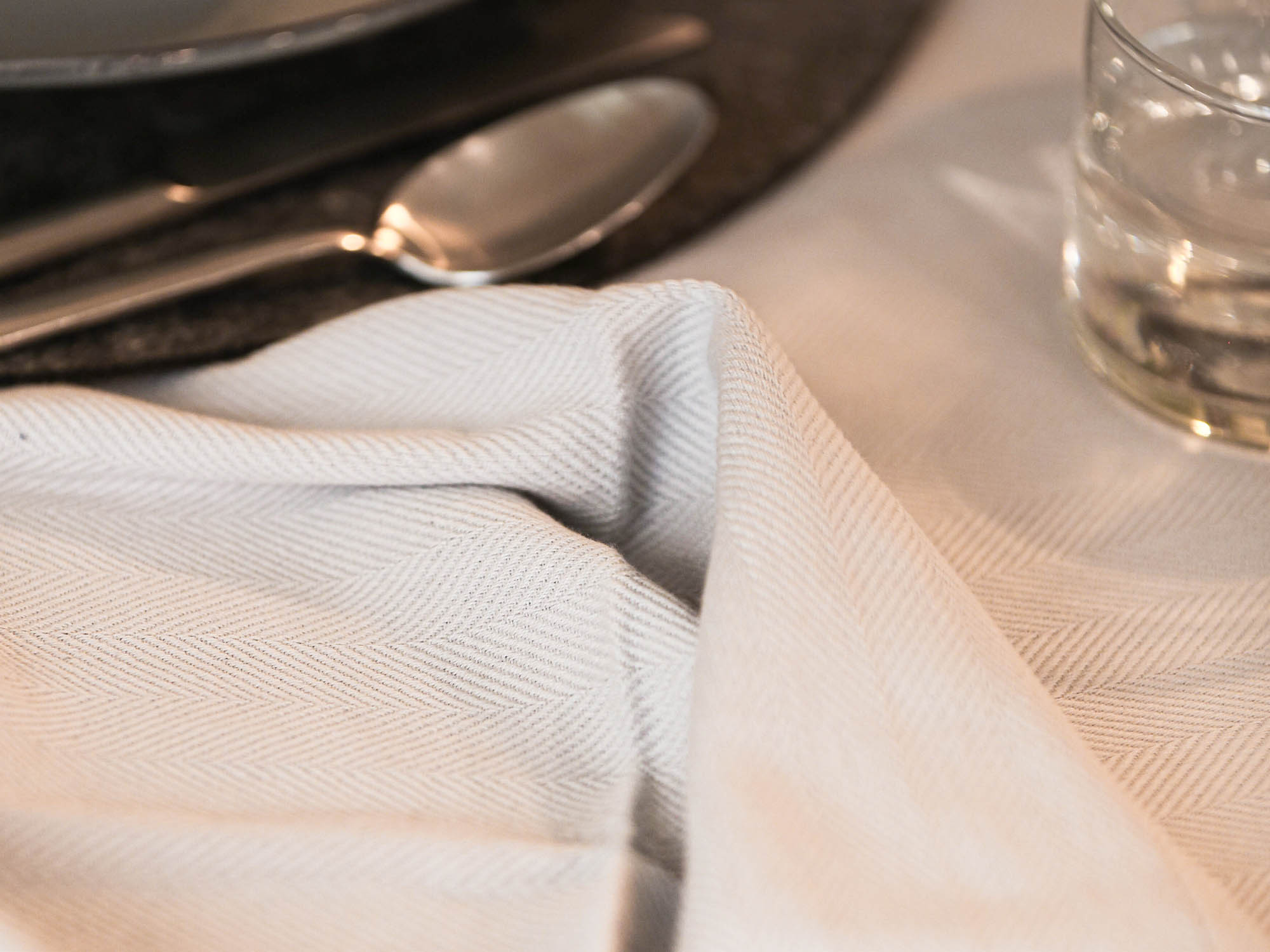 Cremefarbenes Tischtuch / Tischdecke aus 100 % Bio Baumwolle mit Fischgrät Webmuster