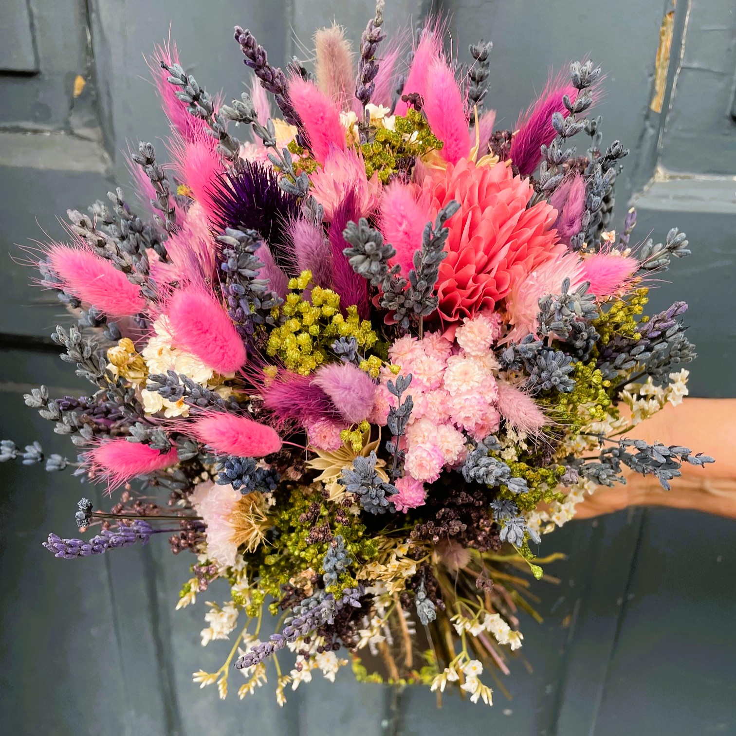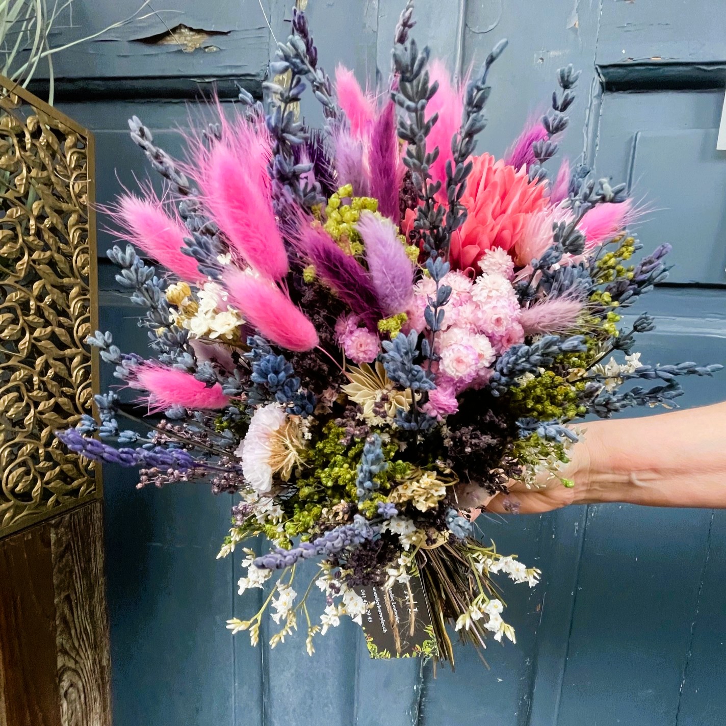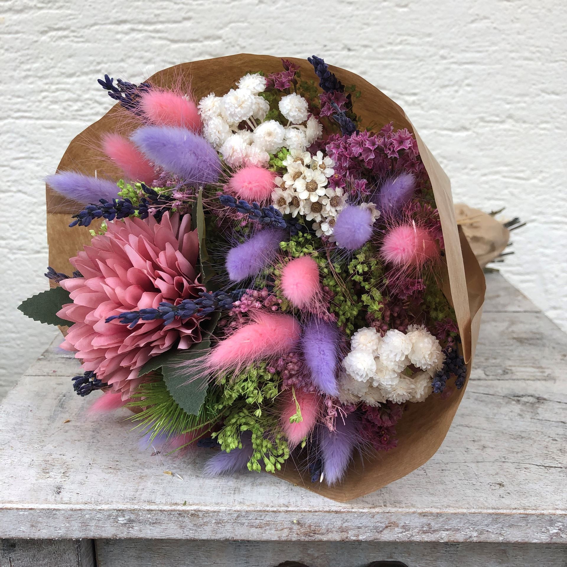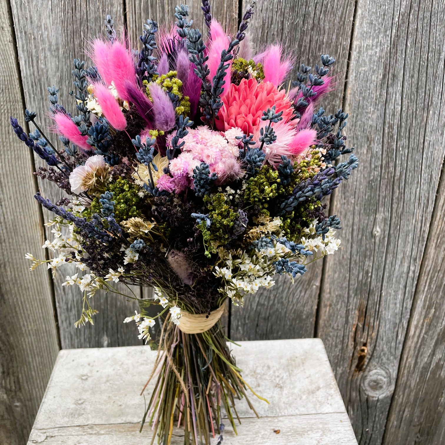 • Trockenblumen sind ein Naturprodukt und die Sträusse / Einzelblumen werden saisonal individuell zusammengestellt und können so in Anordnung und Farbe variieren.