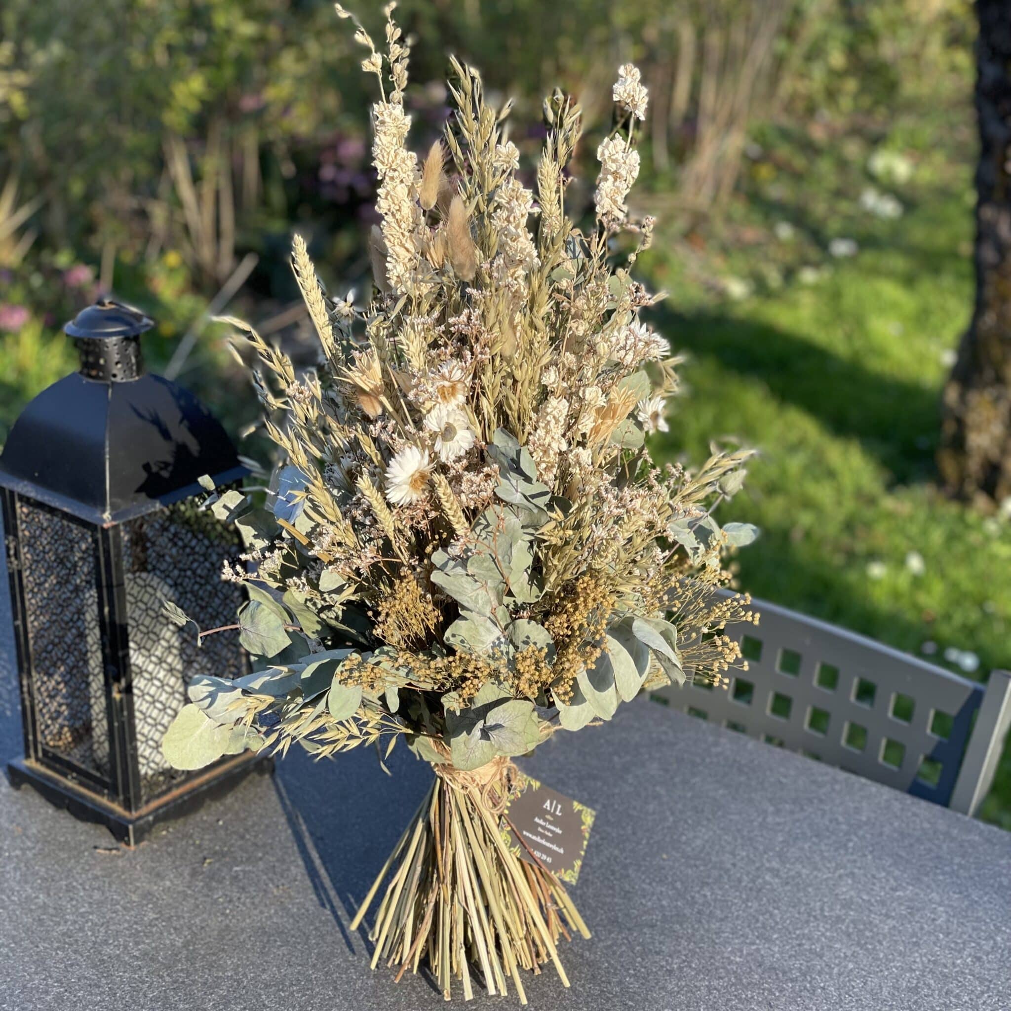 • Trockenblumen sind ein Naturprodukt und die Sträusse / Einzelblumen werden saisonal individuell zusammengestellt und können so in Blumenwahl, Anordnung und Farbe variieren.