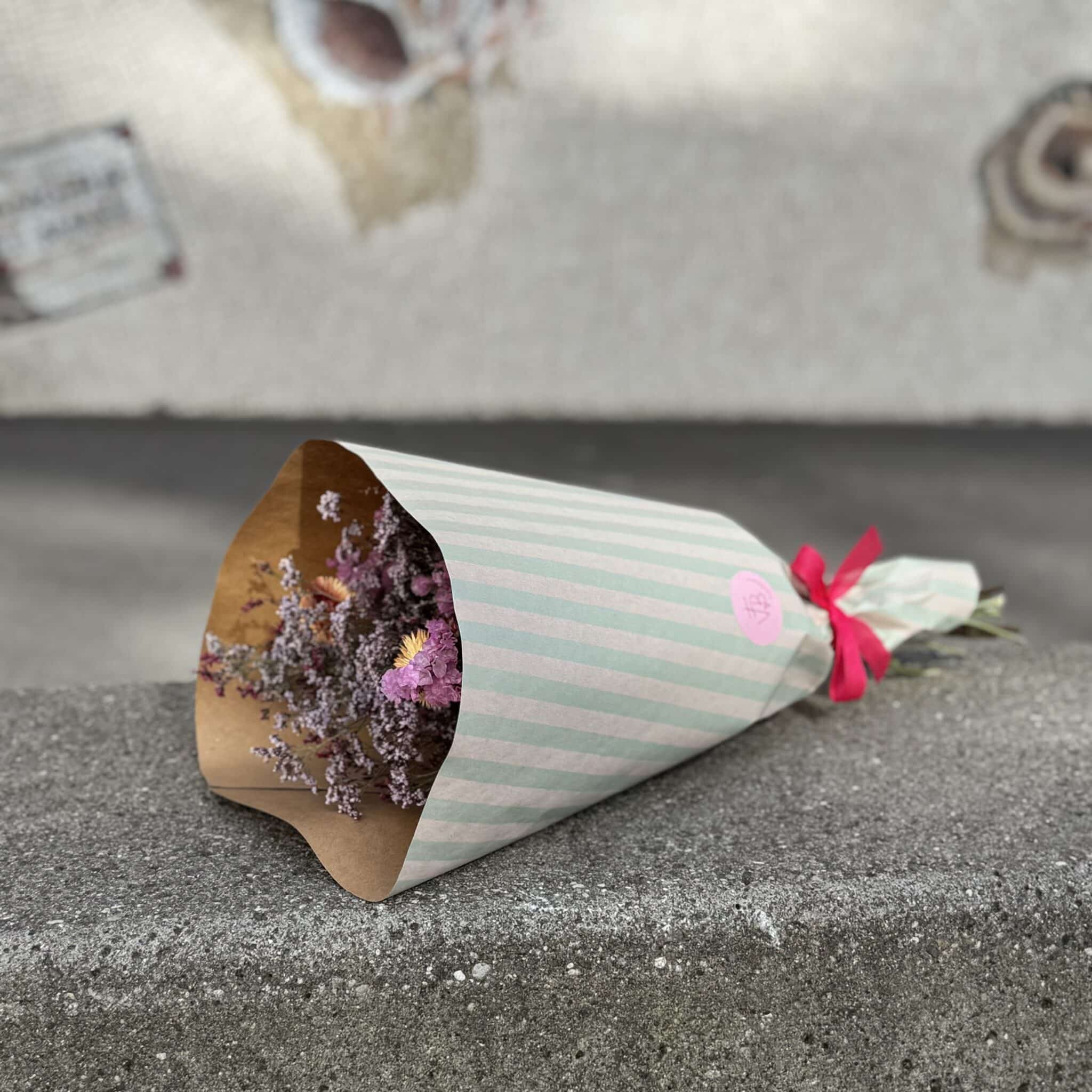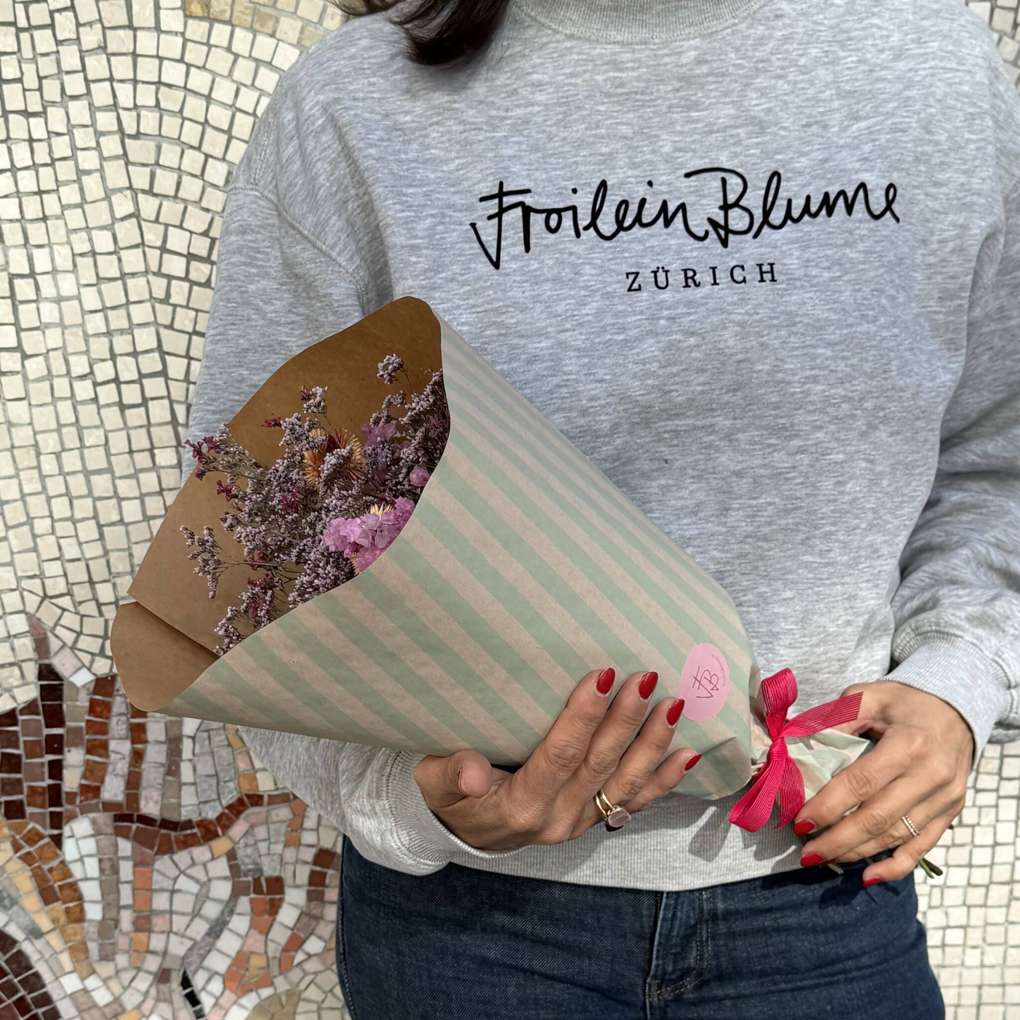 Getreu dem Motto „nachhaltig, langlebig und zeitlos“, kreiert und verkauft Froilein Blume auch Trockenblumen. Auch hier setzt der Blumenladen auf Individualität. Die frischen Blumen werden kopfüber und gut gelüftet im Atelier getrocknet und dann zu einem handgefertigten Unikat gebunden.