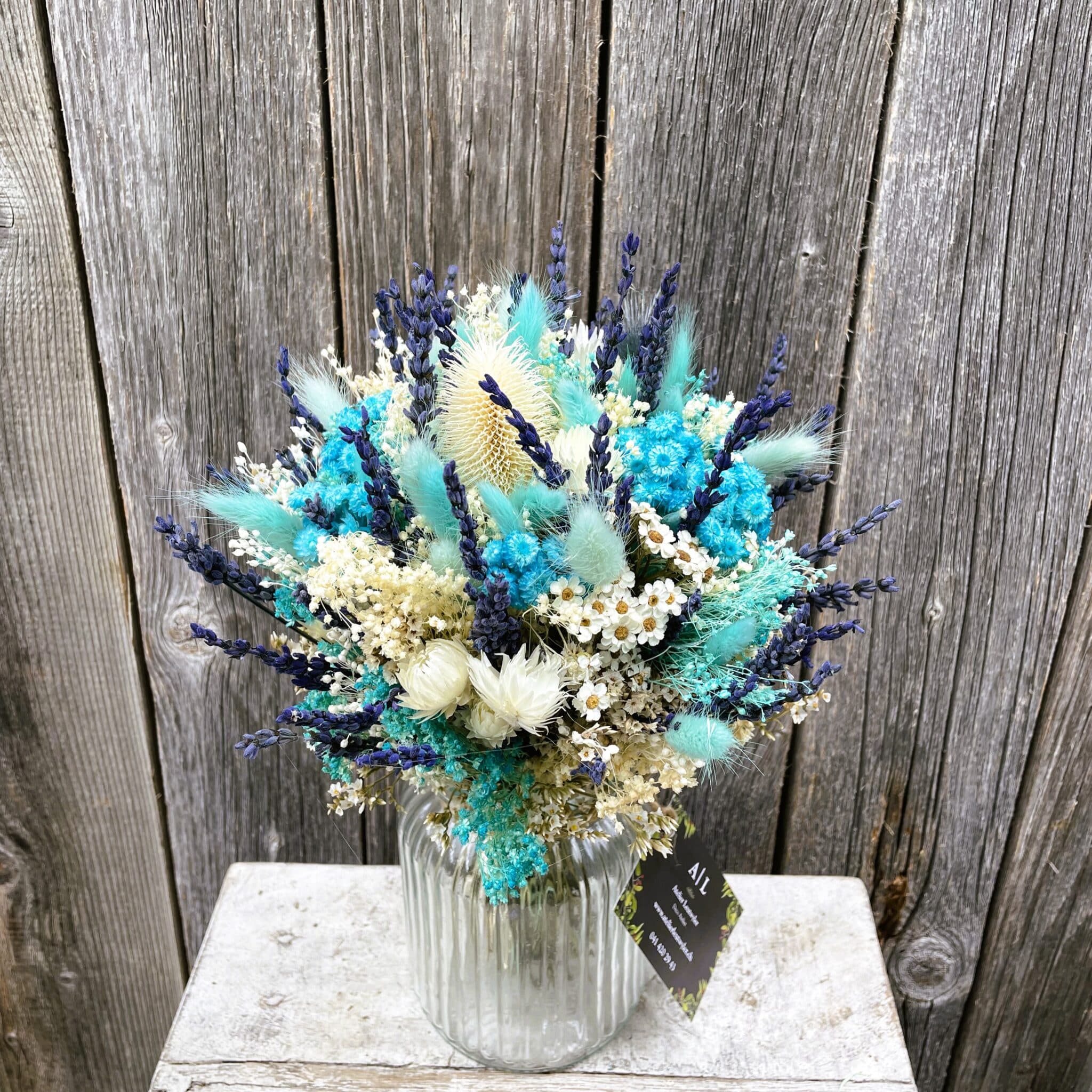 • Trockenblumen sind ein Naturprodukt und die Sträusse / Einzelblumen werden saisonal individuell zusammengestellt und können so in Blumenwahl, Anordnung und Farbe variieren.