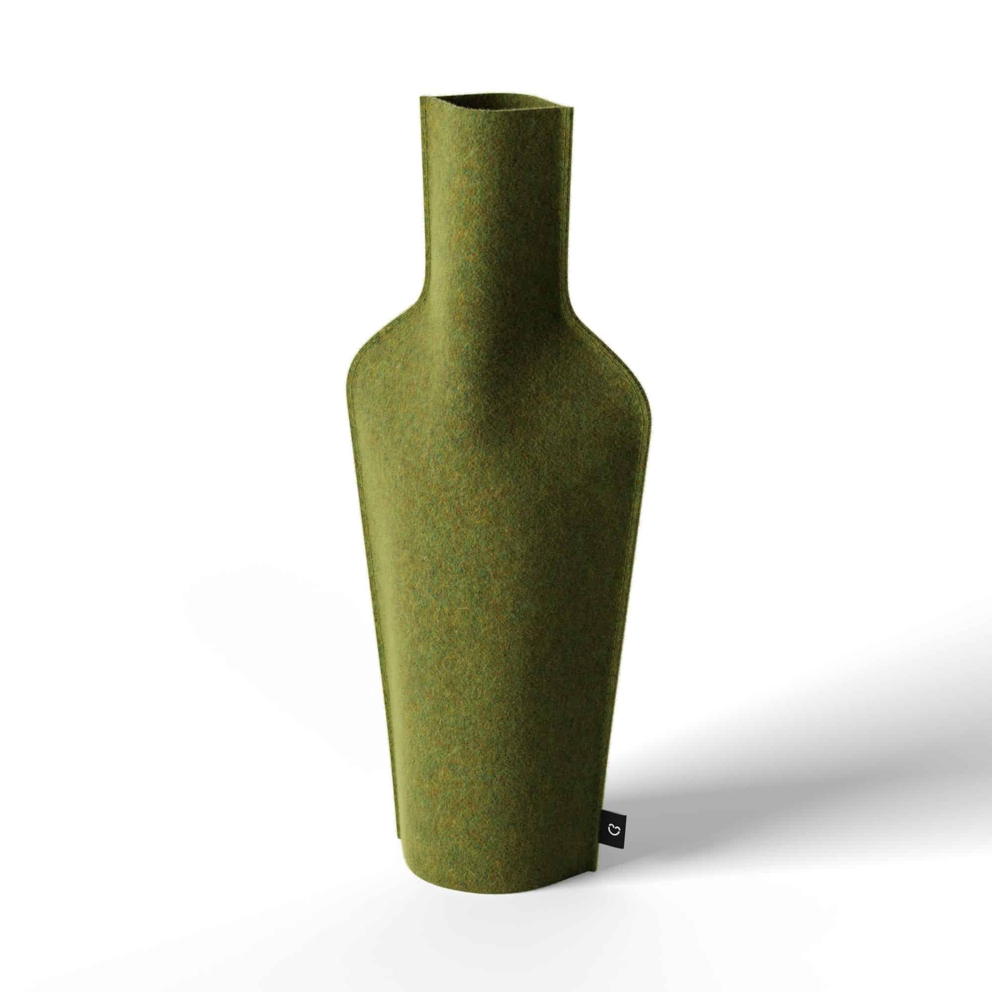 Stoffüberzug aus nachhaltiger Schurwolle, die gebrauchte/leere Glasflaschen in wunderschöne Blumenarrangements verwandelt. Handgefertigt in den Bergen Portugals
