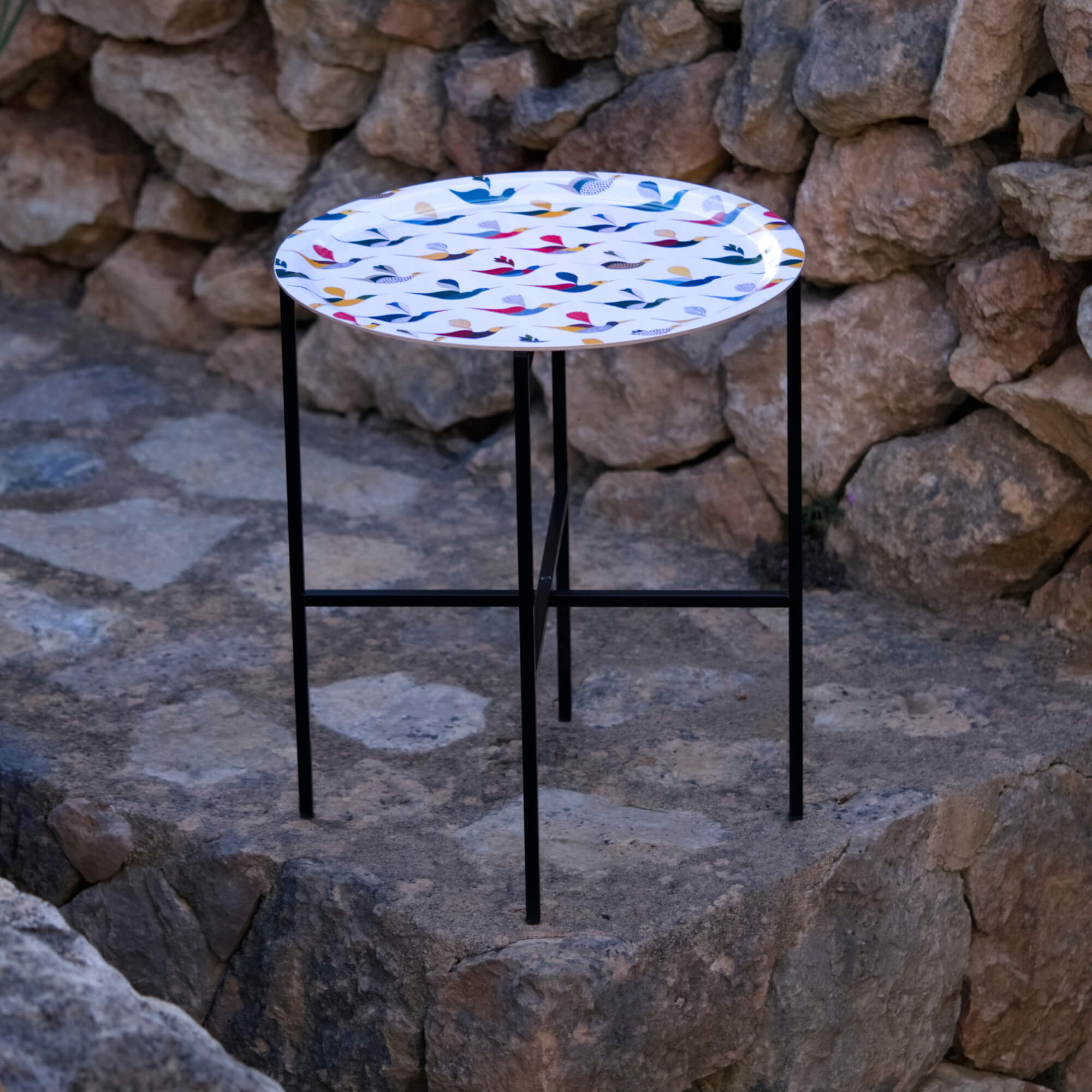 Wir stellen dir unseren beliebtesten Beistelltisch vor: Mit einem vielseitig einsetzbarem Durchmesser von 46 cm und einer Höhe von 53 cm, besteht er aus einem hochwertigen Tablett aus Birkenholz und einem robusten Stahlgestell.