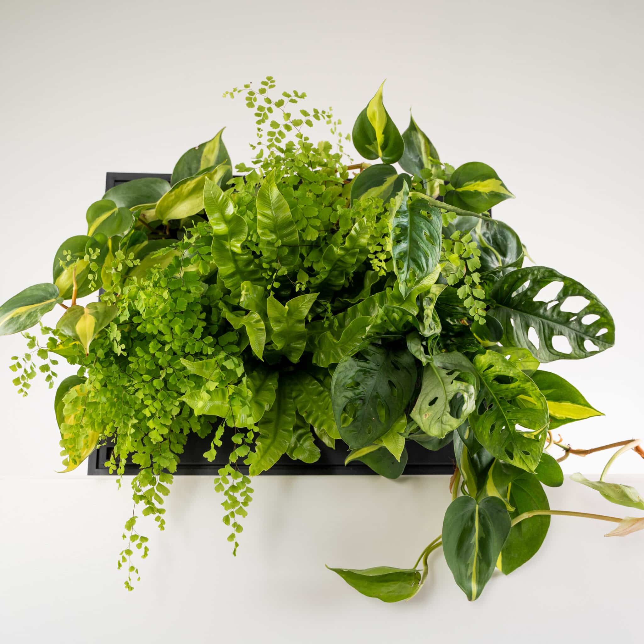 Das System ist modular konzipiert und ganz einfach und flexibel erweiterbar. Ob als kleiner Eye-Catcher oder ganze Pflanzenwand – alles ist mit dem innovativen Schienensystem von „The Box“ innerhalb von Minuten umsetzbar. Die Pflanzen sind die Stars, doch auch die Module selbst begeistern mit minimalistisch modernen Design und hochwertiger Erscheinung. Das Giessintervall für The Box beträgt 14-21 Tage. Bei mehreren Boxen wird immer nur die oberste Reihe gegossen.