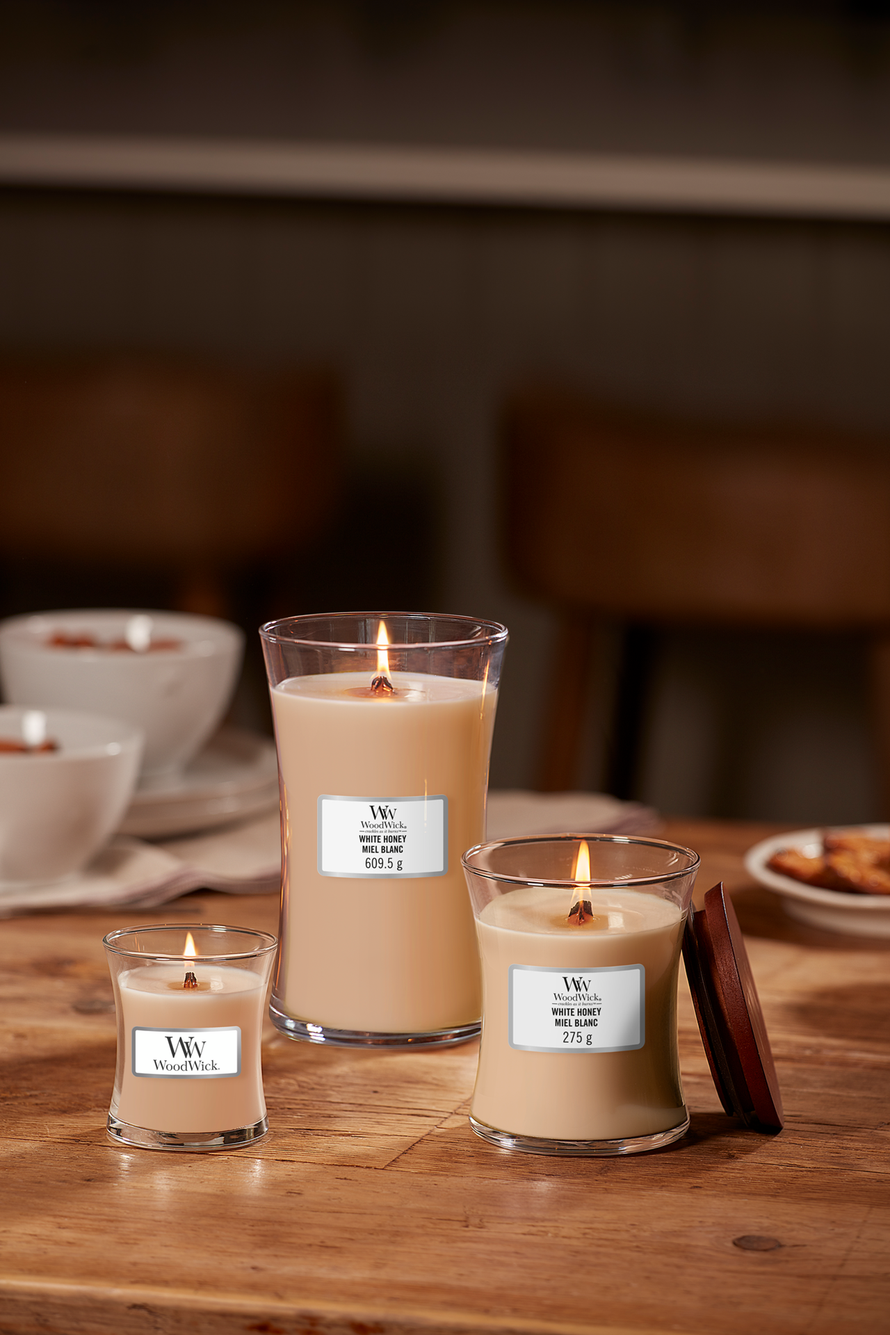 Die besonderen sanduhr-förmigen Kerzen füllen Dein Zuhause mit weichem Knistern und einladenden Düften von WoodWick. Die Kerzen zeichnen sich durch ein sauberes, modernes Design und einer eleganten Form aus.