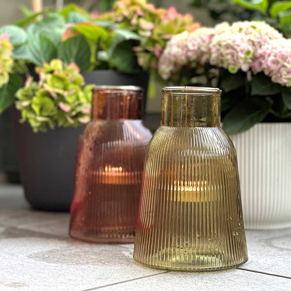 Ob auf dem Balkon oder dem Esstisch – dieses moderne Windlicht zaubert im Handumdrehen eine stimmungsvolle Atmosphäre. Das fein gerillte Glasdekor bricht das Licht in faszinierende Facetten und taucht die Umgebung in einen warmen, sanften Schimmer.