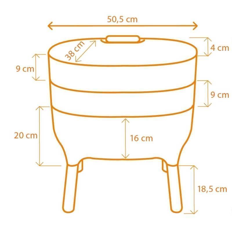 Der Wurmkomposter besteht aus dem Deckel, dem Bodenelment mit Füssen, zwei Wurmschalen (Wurmbett) und Zubehör. Zusätzliche Wurmschalen können bestellt werden.