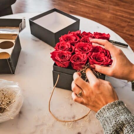 Nun ist es an der Zeit, selbst kreativ zu werden. Mit unserem Video sowie unserer Schritt-für-Schritt-Anleitung machen wir es dir so einfach wie möglich, eine wunderschöne und zeitlose Infinity-Rosenbox selbst zu gestalten. Viel Spass!