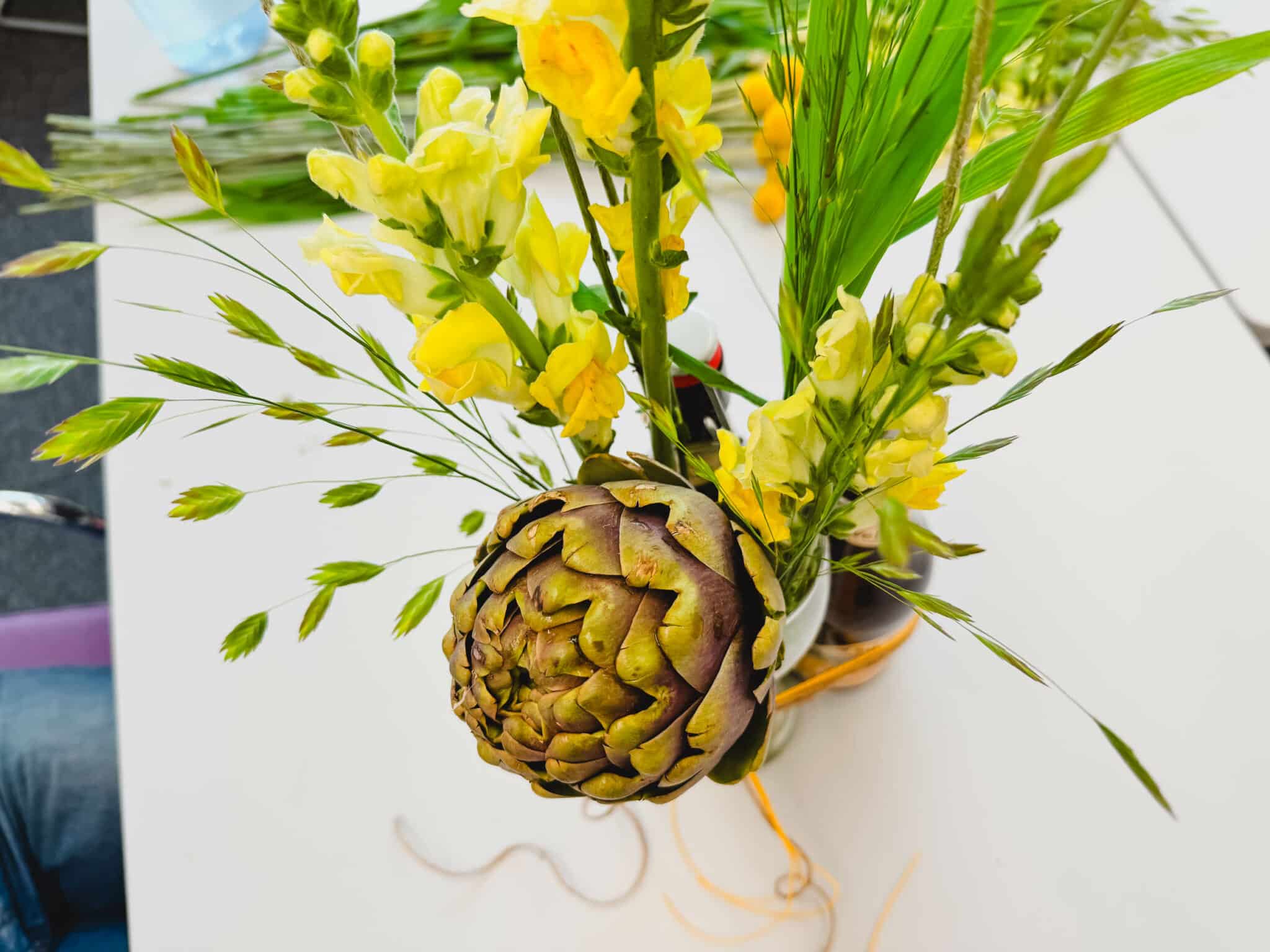 Glas mit Wasser füllen und Schnittblumen einstellen. Gib Deiner Kreativität freien Lauf.