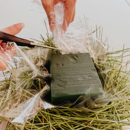 Damit beginnen, Föhrennadeln in das Drahtnest zu stecken.