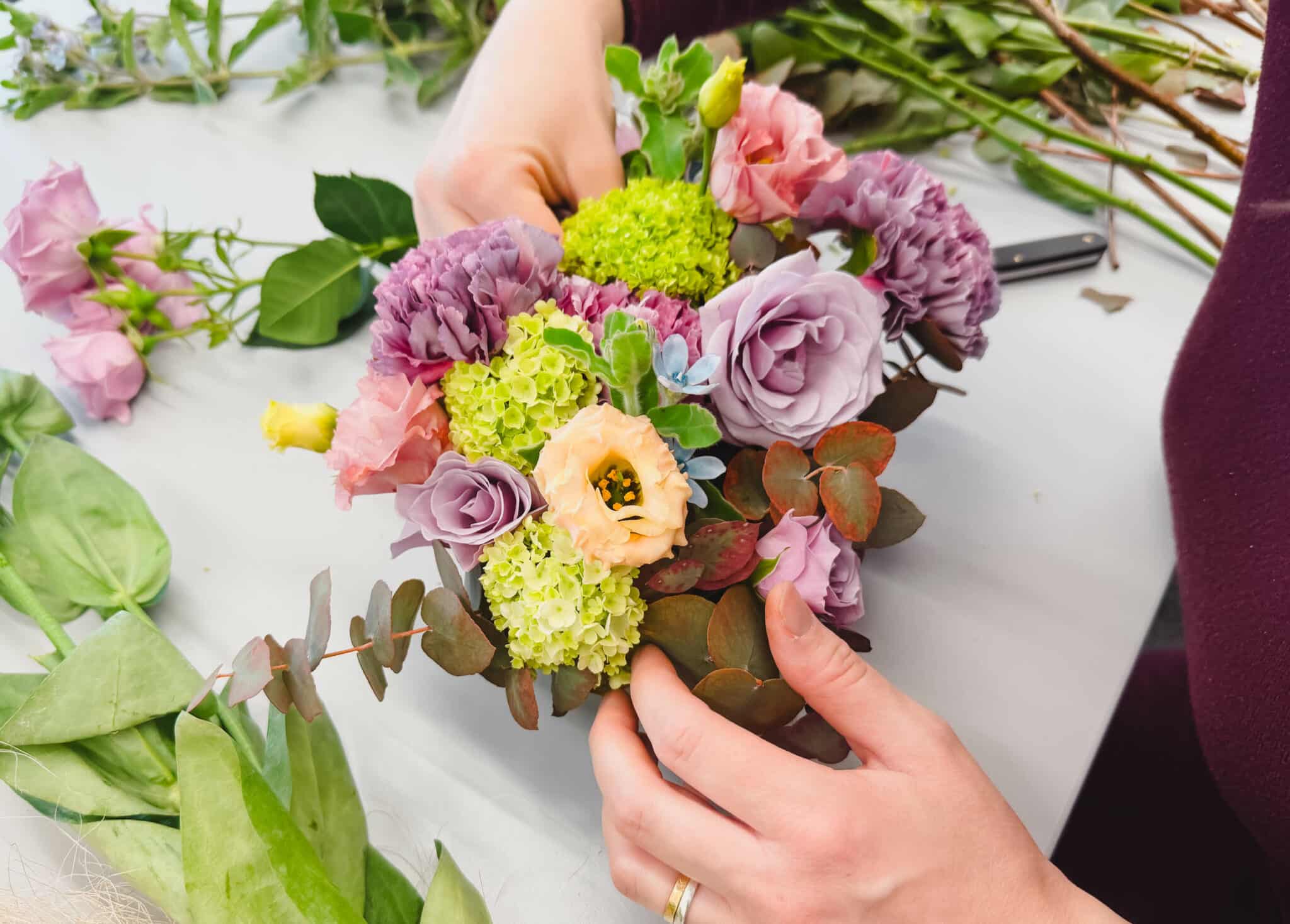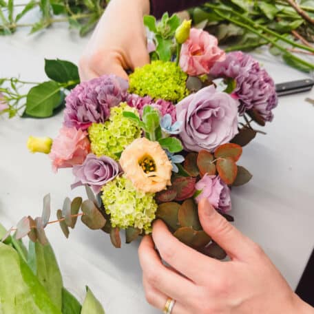 Remplis la mousse de boutures de fleurs et de verdure jusqu'à ce qu'on ne la voie plus.