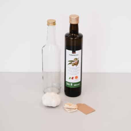 Remplir la bouteille d'huile d'olive (le romarin doit toujours être complètement recouvert d'huile)