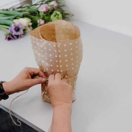 Entoure le vase de papier d'emballage et fixe-le avec la ficelle.