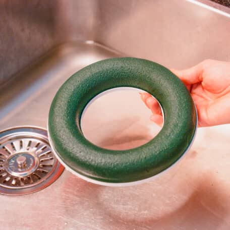 Mets l'anneau Oasis dans une bassine remplie d'eau pour qu'il puisse s'imbiber.