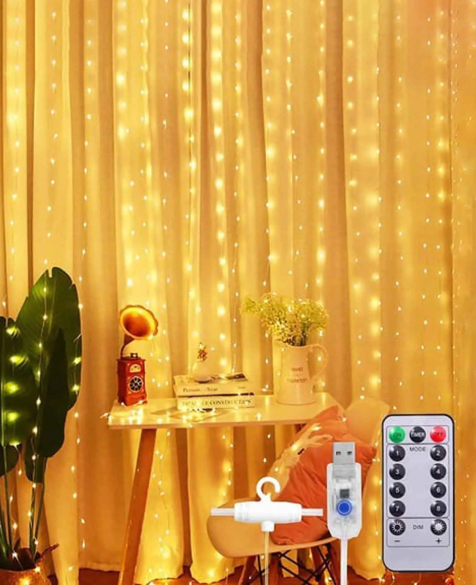 300 LED's Chaîne de lumière rideau Décoration éclairage USB 8 modes - Blanc chaud, 3 x 3m