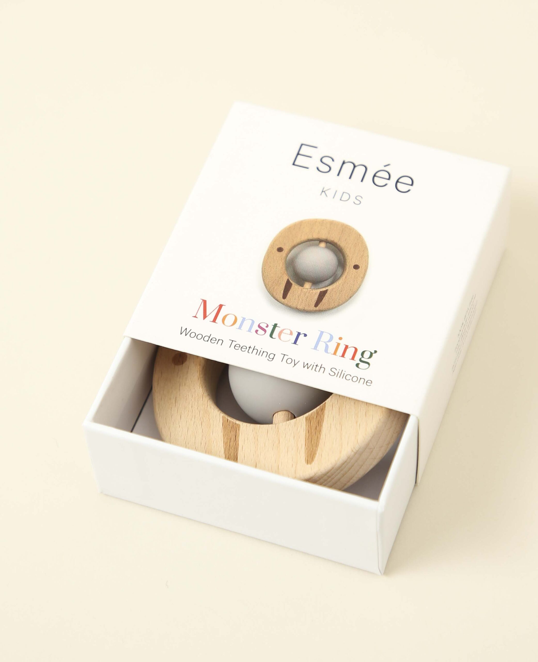 Monstre / morse anneau de dentition en bois de hêtre et silicone, 3 mois et plus