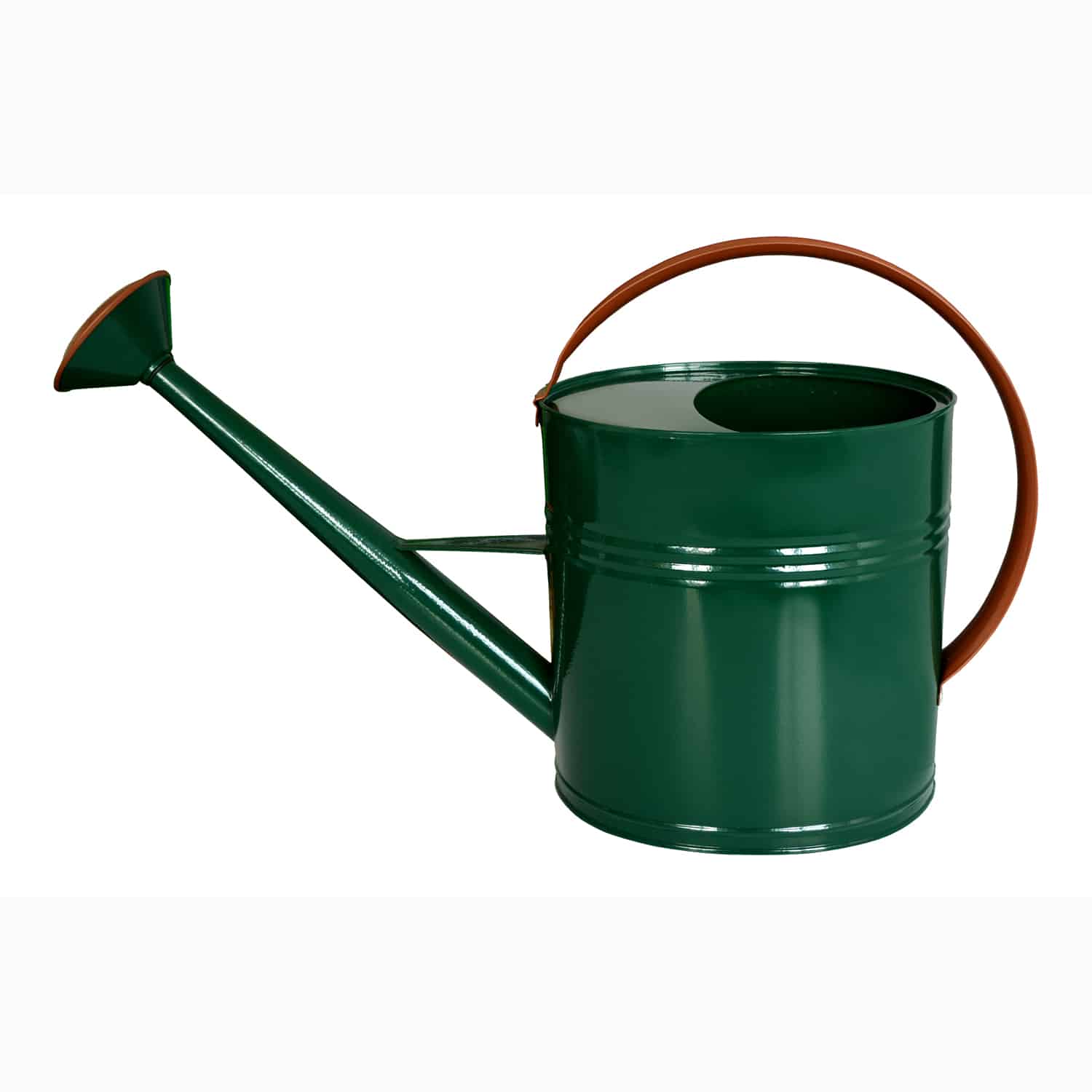 L'élégant arrosoir ovale vert avec une anse marron n'est pas seulement fonctionnel, mais aussi esthétique.