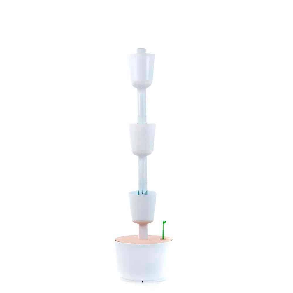 Jardinière verticale de couleur blanche et couvercle en bois de pin. Modulaire et adaptable. Modèle avec 3 pots.