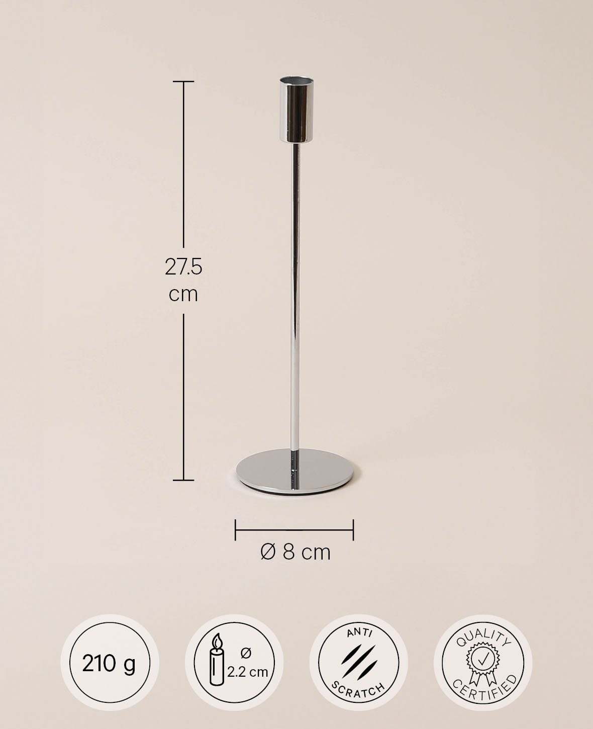 - Chandelier pour bougies tubulaires et pointues en métal avec une finition argentée brillante