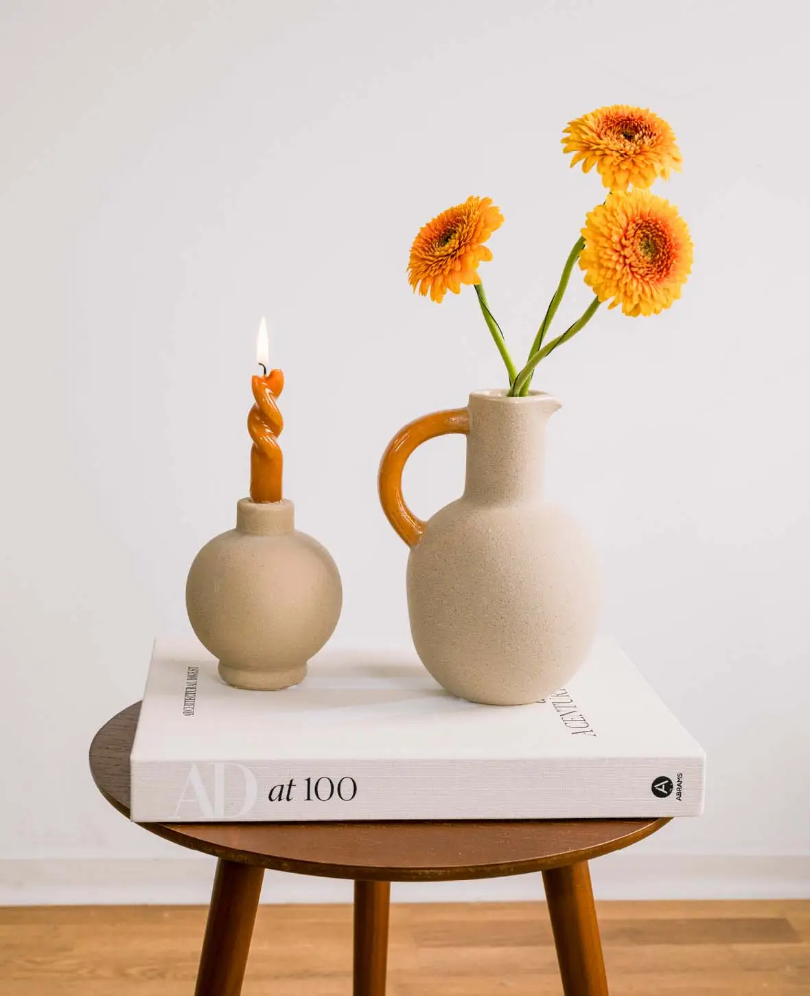 Ce bougeoir simple au style Japandi très tendance donne à ton intérieur un look particulier et moderne, surtout en combinaison avec notre pichet assorti.