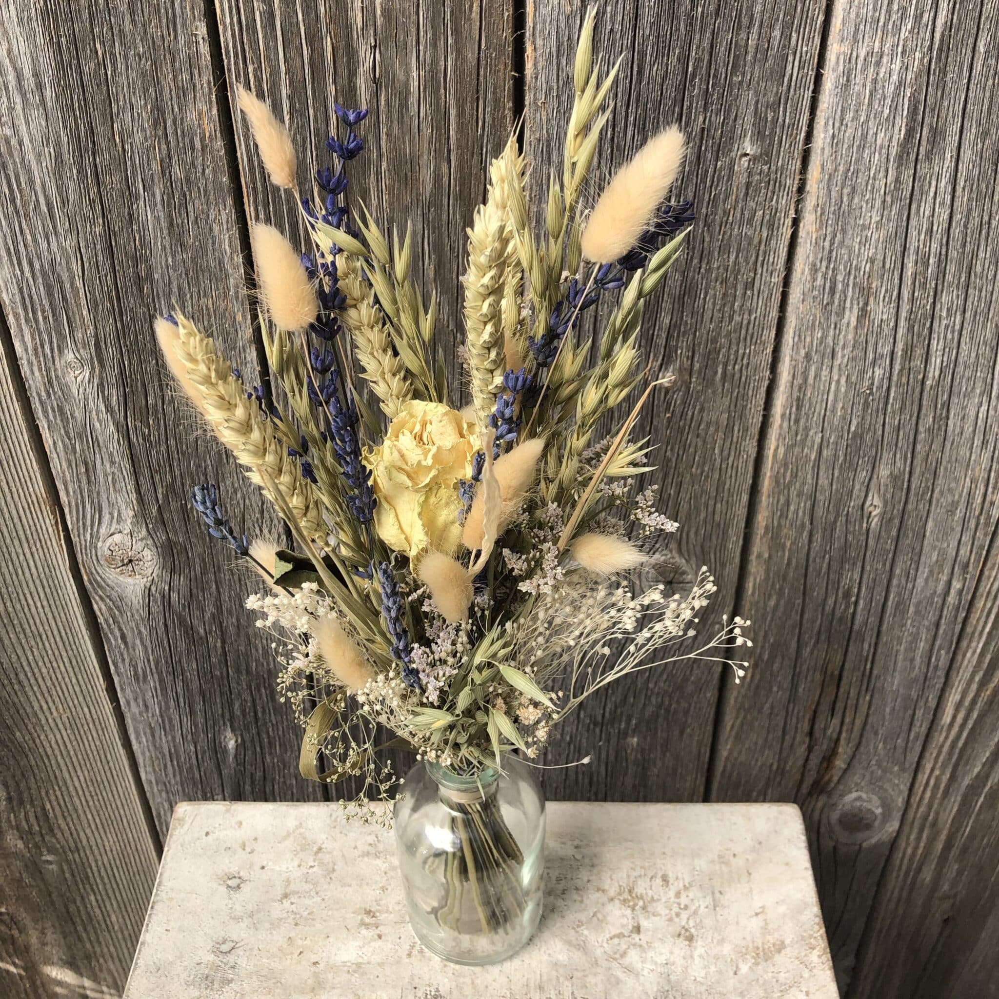 - Les fleurs séchées sont un produit naturel et les bouquets / fleurs individuelles sont composés individuellement selon la saison et peuvent donc varier dans le choix des fleurs, leur disposition et leur couleur.