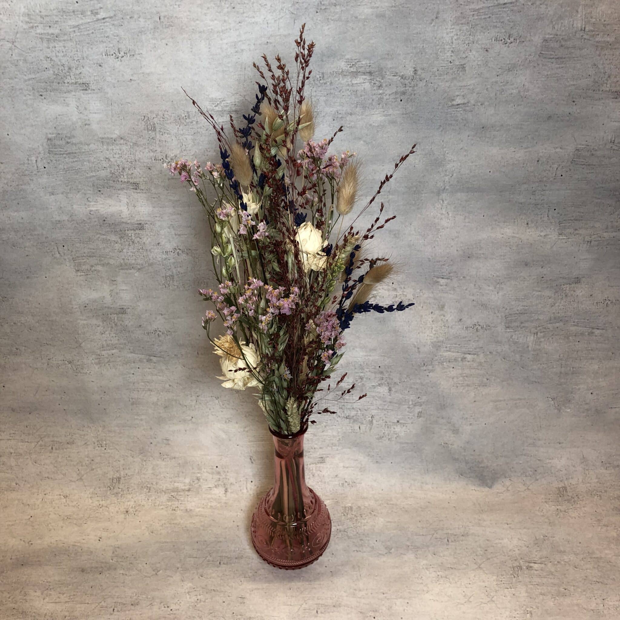 Fleurs séchées - la nouvelle tendance en matière d'intérieur ; bouquet de fleurs séchées Bouquet de fleurs séchées "rosé-mix" avec vase Ø env.10 cm H env.40 cm / vase vide sans bouquet H env.17cm