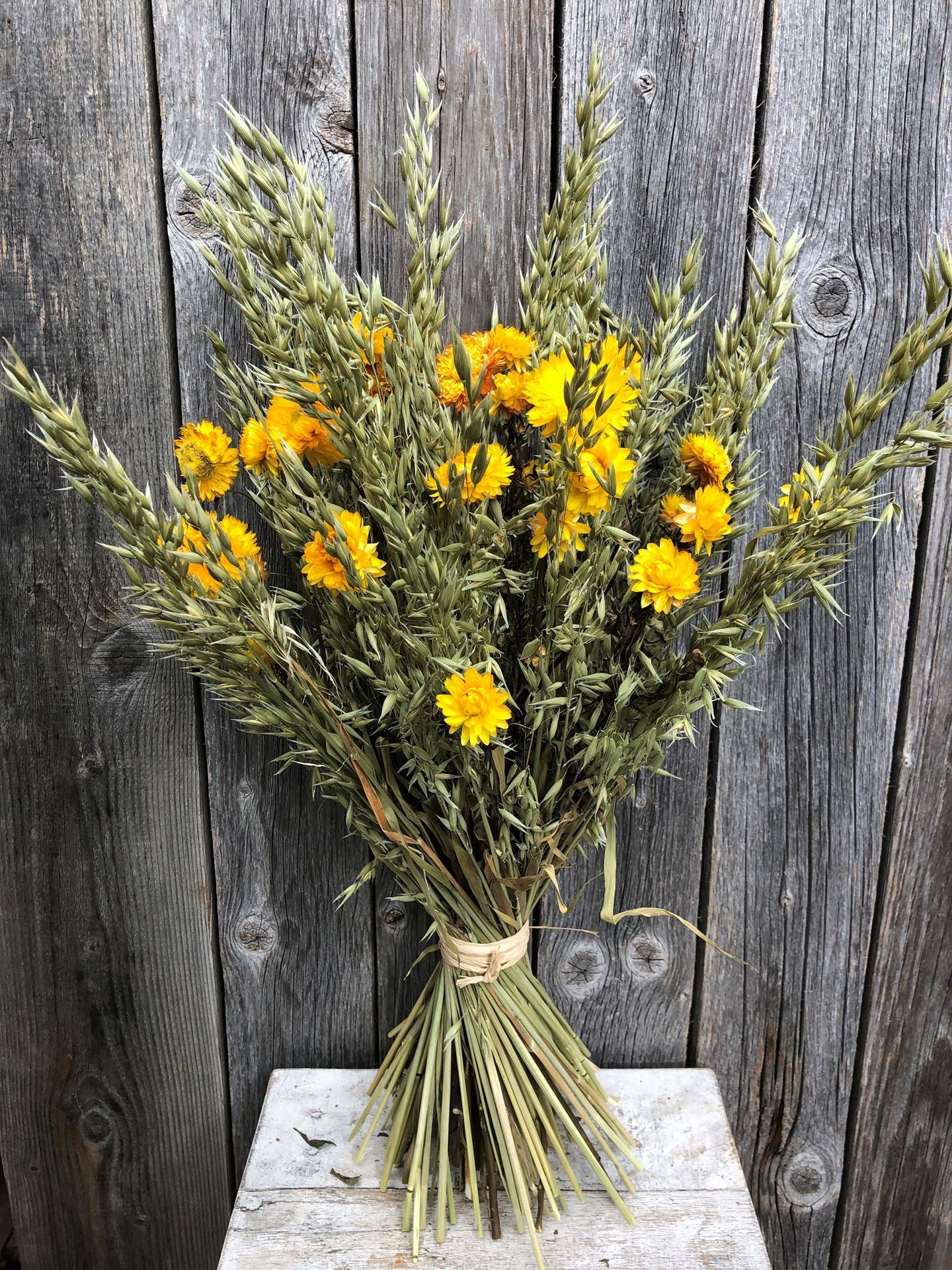 Fleurs séchées - la nouvelle tendance en matière d'intérieur ; Bouquet nature Bouquet de fleurs séchées avec des fleurs de paille jaunes Ø env.20cm, L env.50cm