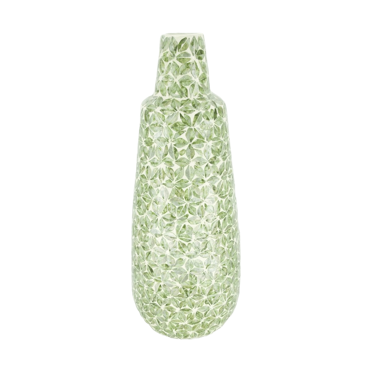 Apporte une atmosphère exotique à ta maison avec ce magnifique vase, fabriqué à partir d'une combinaison spéciale de capiz et de bambou dans une couleur verte estivale. Avec des dimensions de ø22×29 cm, ce vase est un véritable accroche-regard qui égayera n'importe quelle pièce de ta maison.