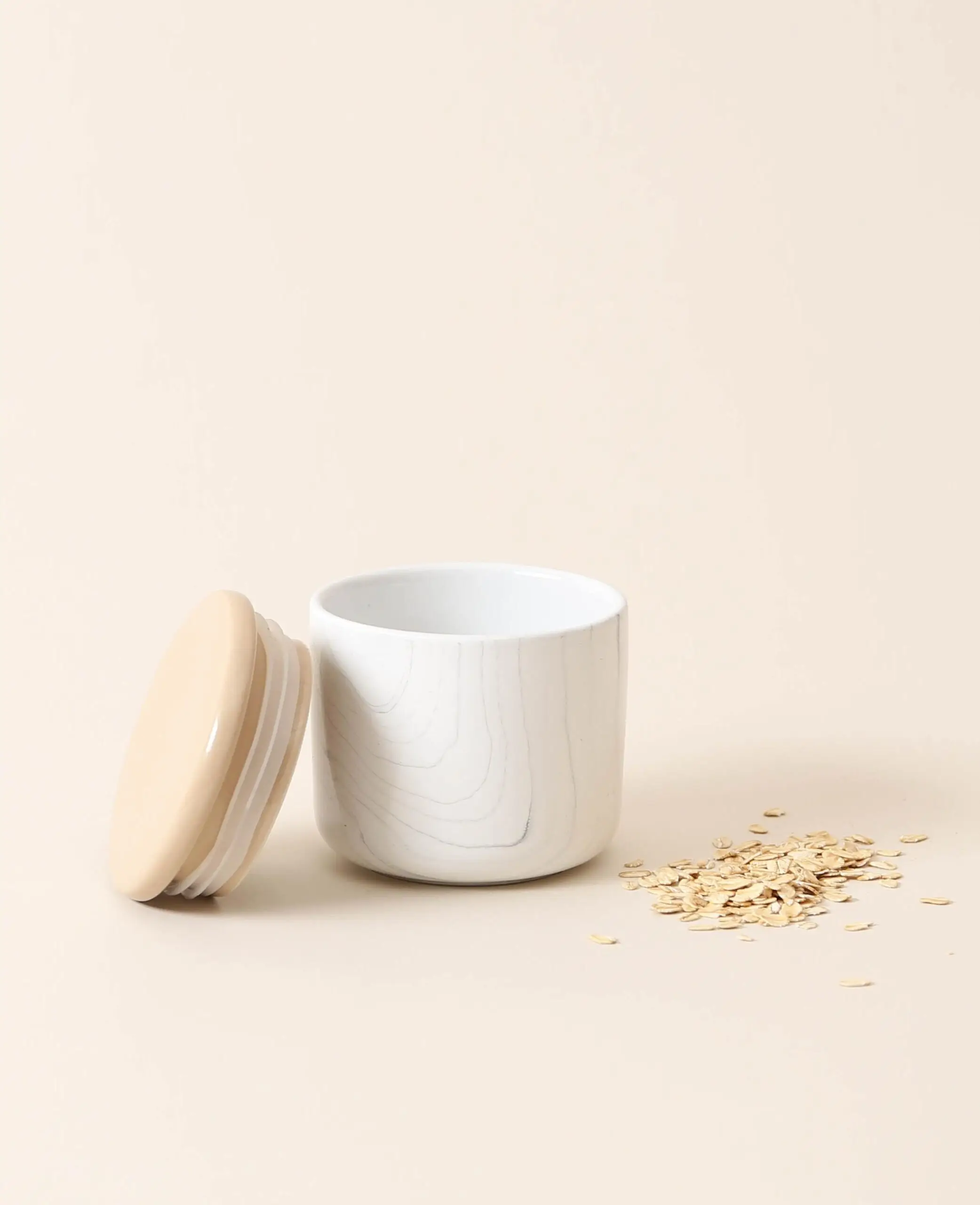 Cette boîte ronde en pierre au joli design marbré est vraiment polyvalente : que ce soit pour stocker des aliments secs dans la cuisine ou des bijoux dans le dressing, le sceau en silicone et le couvercle en pierre permettent de tout fermer proprement et en toute sécurité et de le conserver avec style.