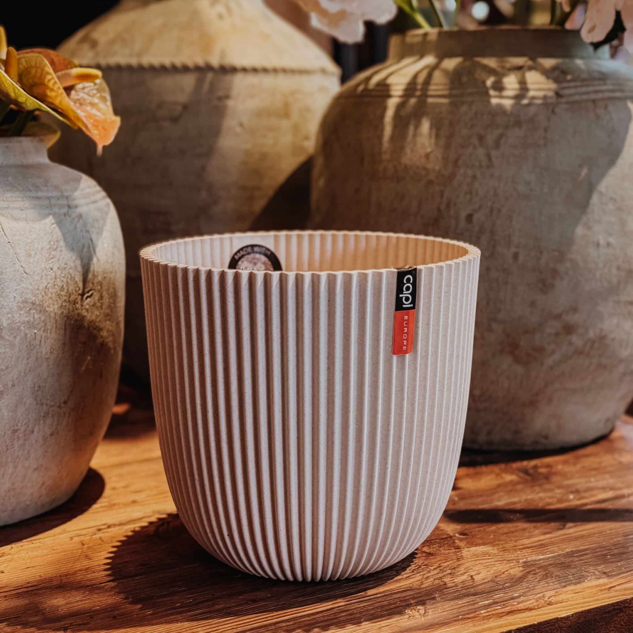 "MADE WITH" COLLECTION Capi Europe Pot Groove beige en sciure de bois, H 15cm, Ø 16.5cm