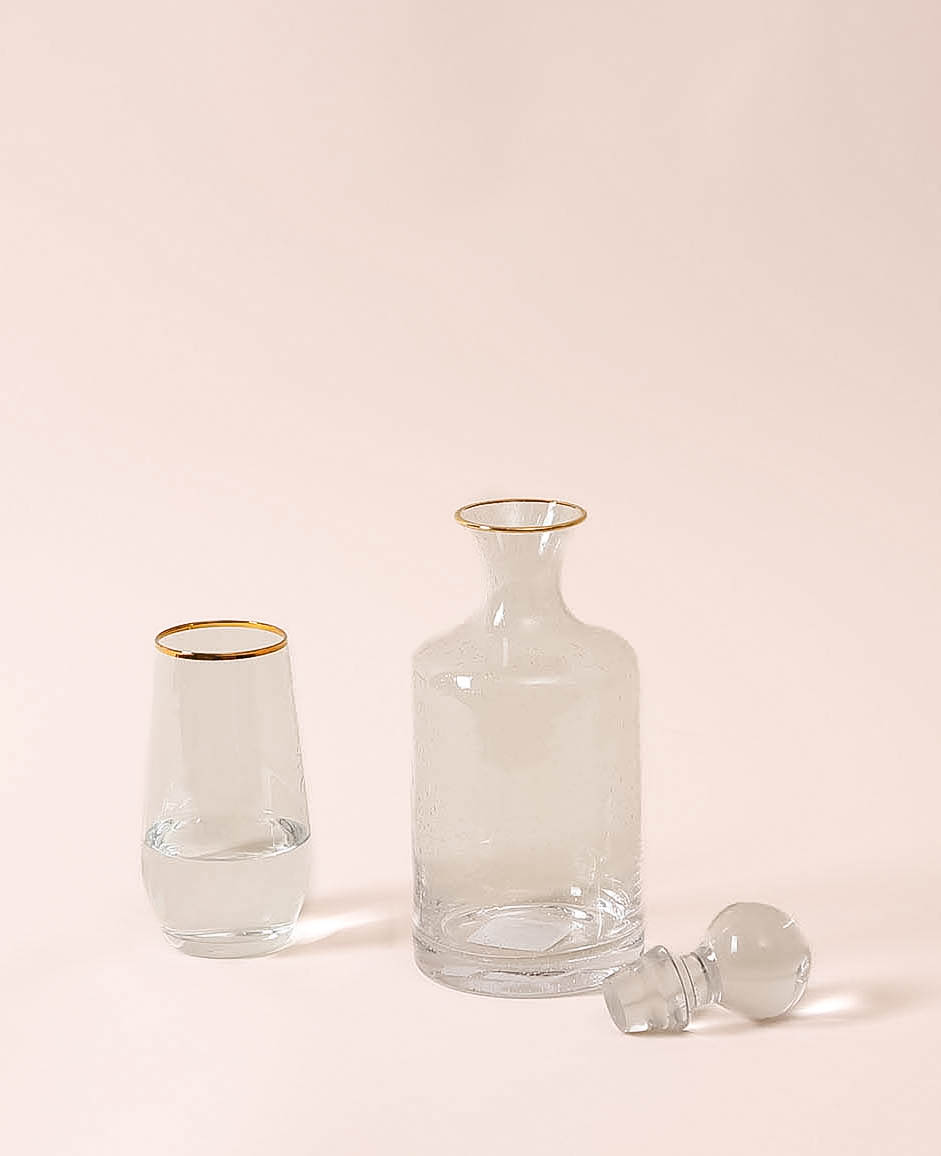 Carafe en verre avec bord doré, diamètre 5,5 cm