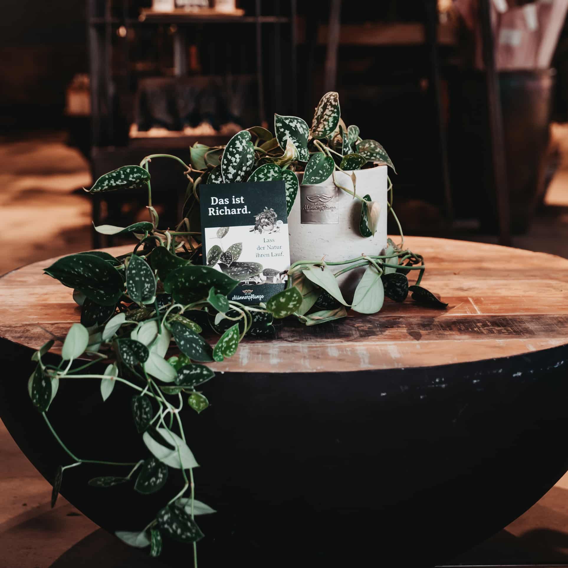 La plante pour homme est livrée avec une carte postale assortie (dans la langue du lieu de livraison) et dans une boîte de plante pour homme stylée.