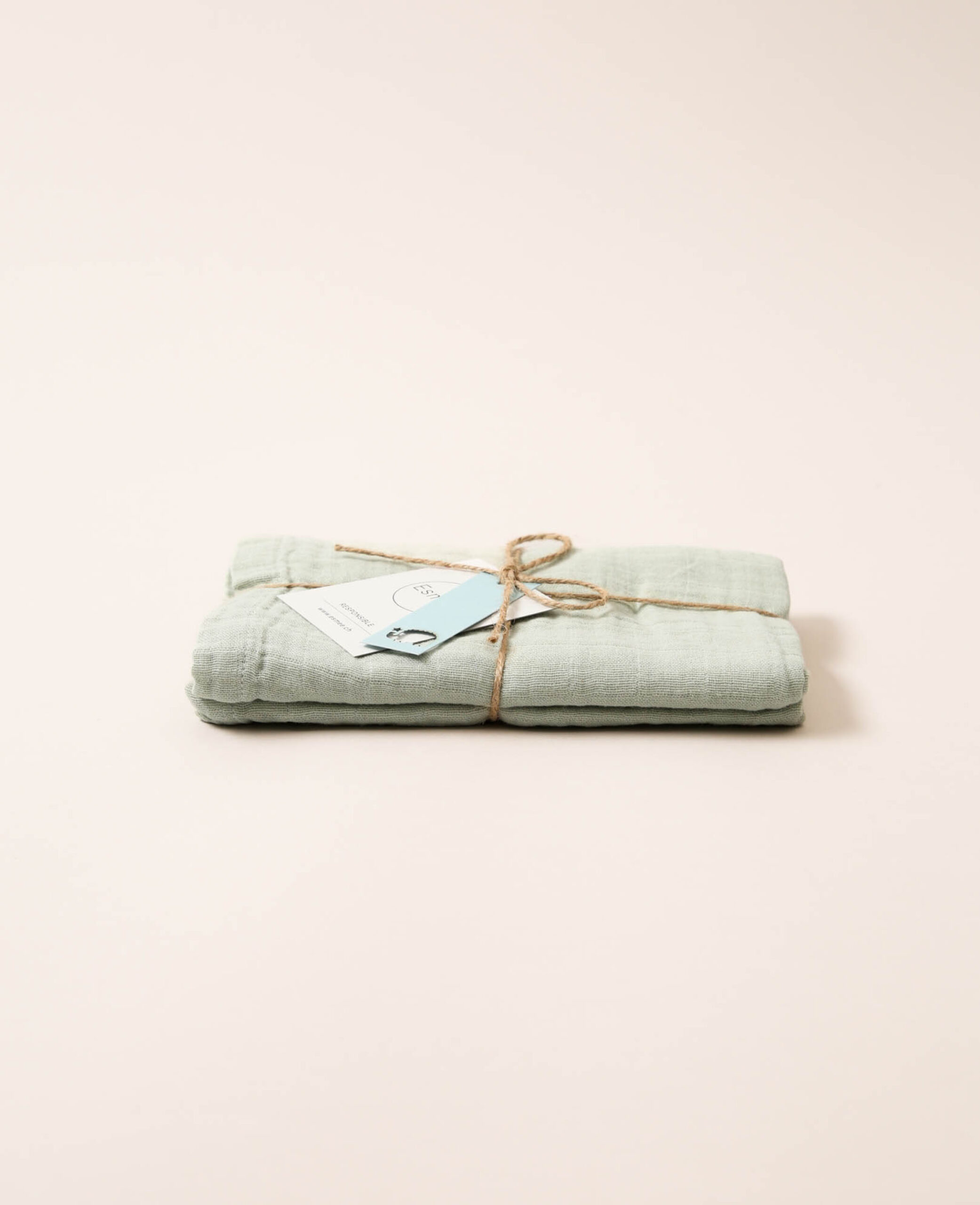 Tissu de mousseline / tissu de gaze en coton bio 100% comme doudou pour les bébés ou comme accessoire de mode et de décoration en vert sauge, 75 x 75 cm