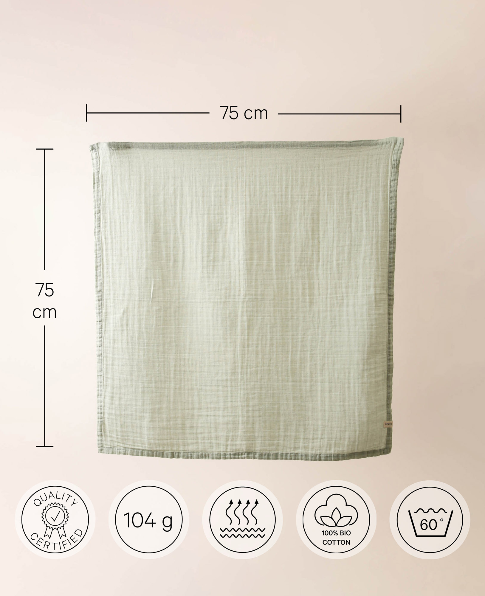 - Tissu de gaze en coton-mousseline vert sauge, 75 x 75 cm